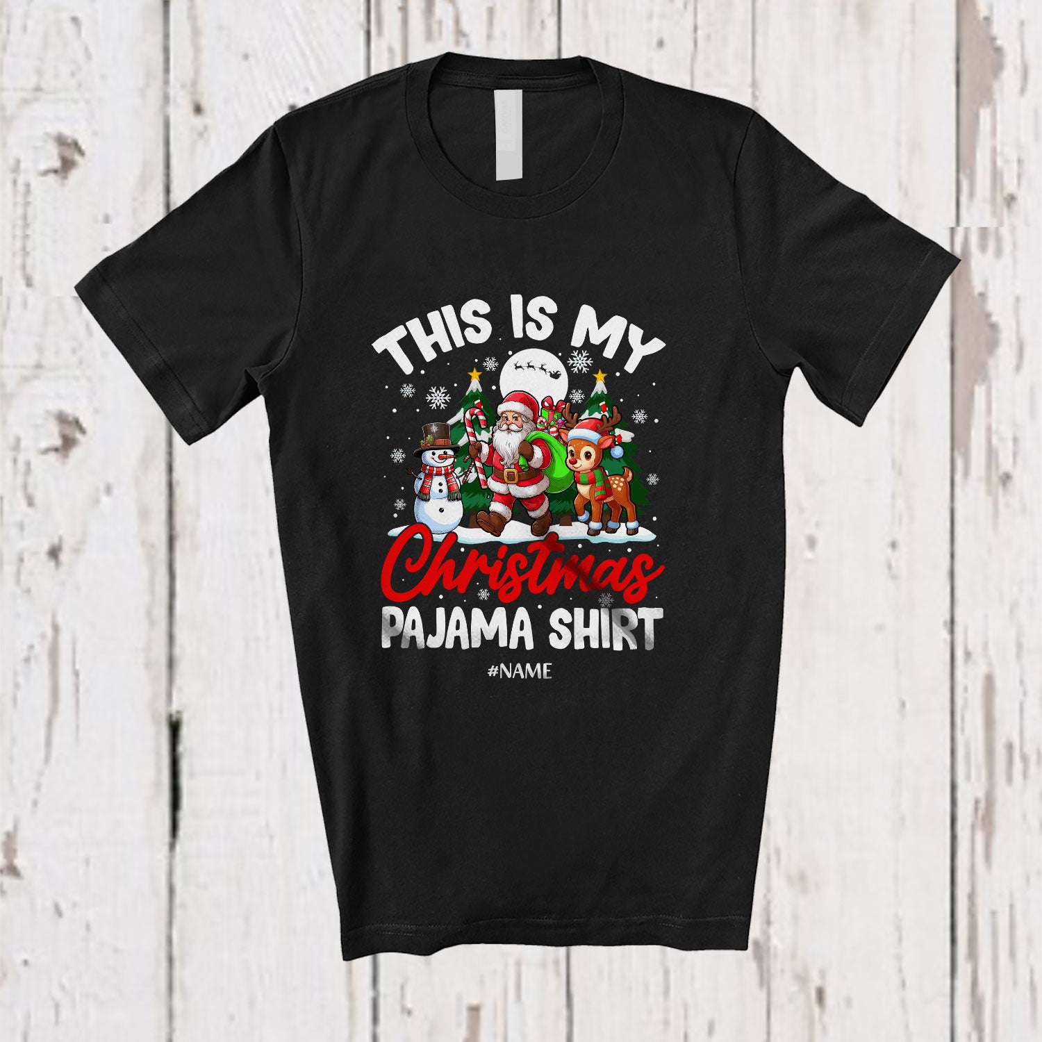Personalized Custom Name My Christmas Pajama Shirt; Joyful X-mas Santa Snowman T-Shirt