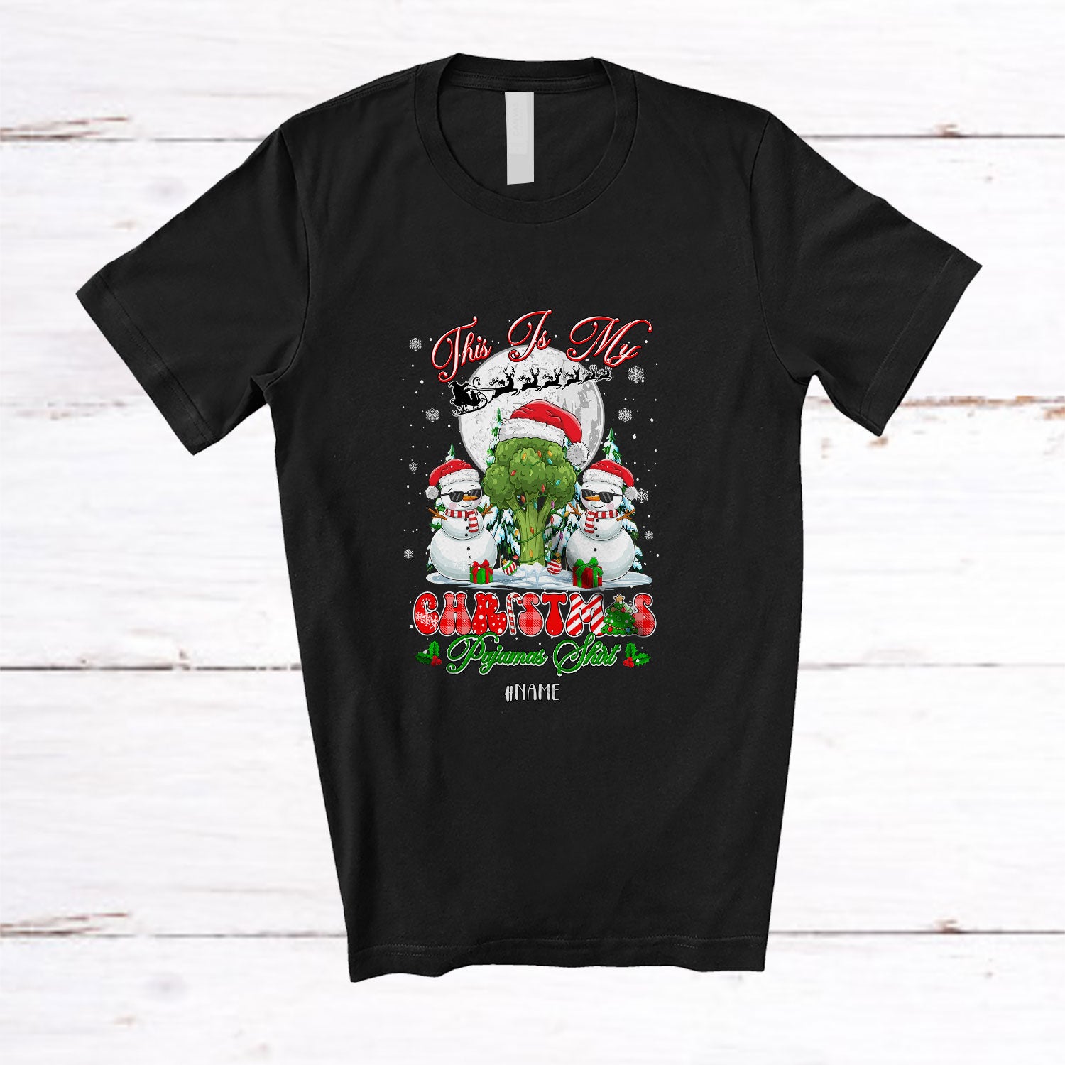 • Personalized Custom Name My Christmas Pajamas Shirt; Lovely Broccoli Snowman; Vegetable Vegan T-Shirt. This cotton t-shirt is a durable staple product with a classic fit. One of the most popular items, it has a relaxed style made for everyday and casual wear.