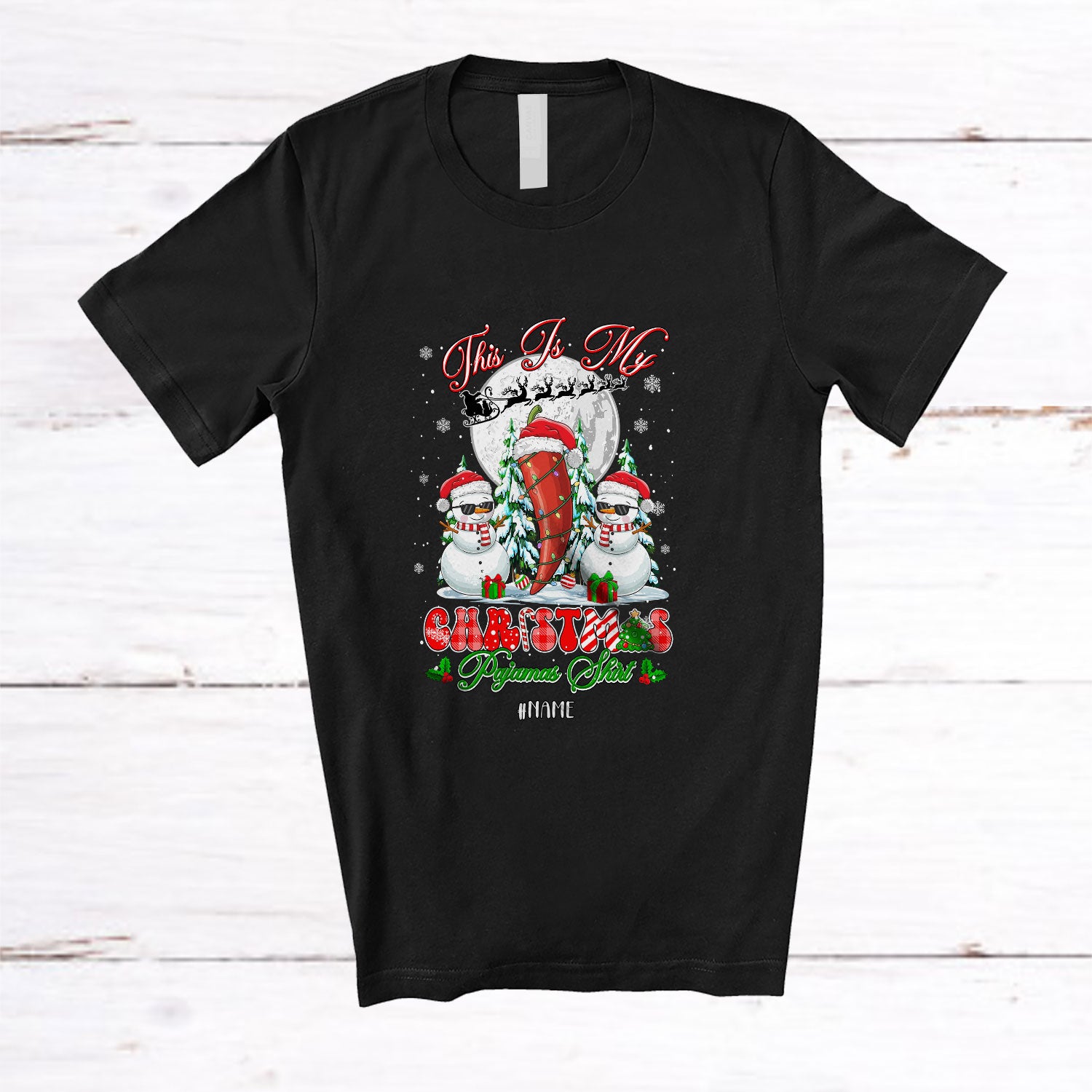 Personalized Custom Name My Christmas Pajamas Shirt; Lovely Chilli Snowman; Vegetable Vegan T-Shirt