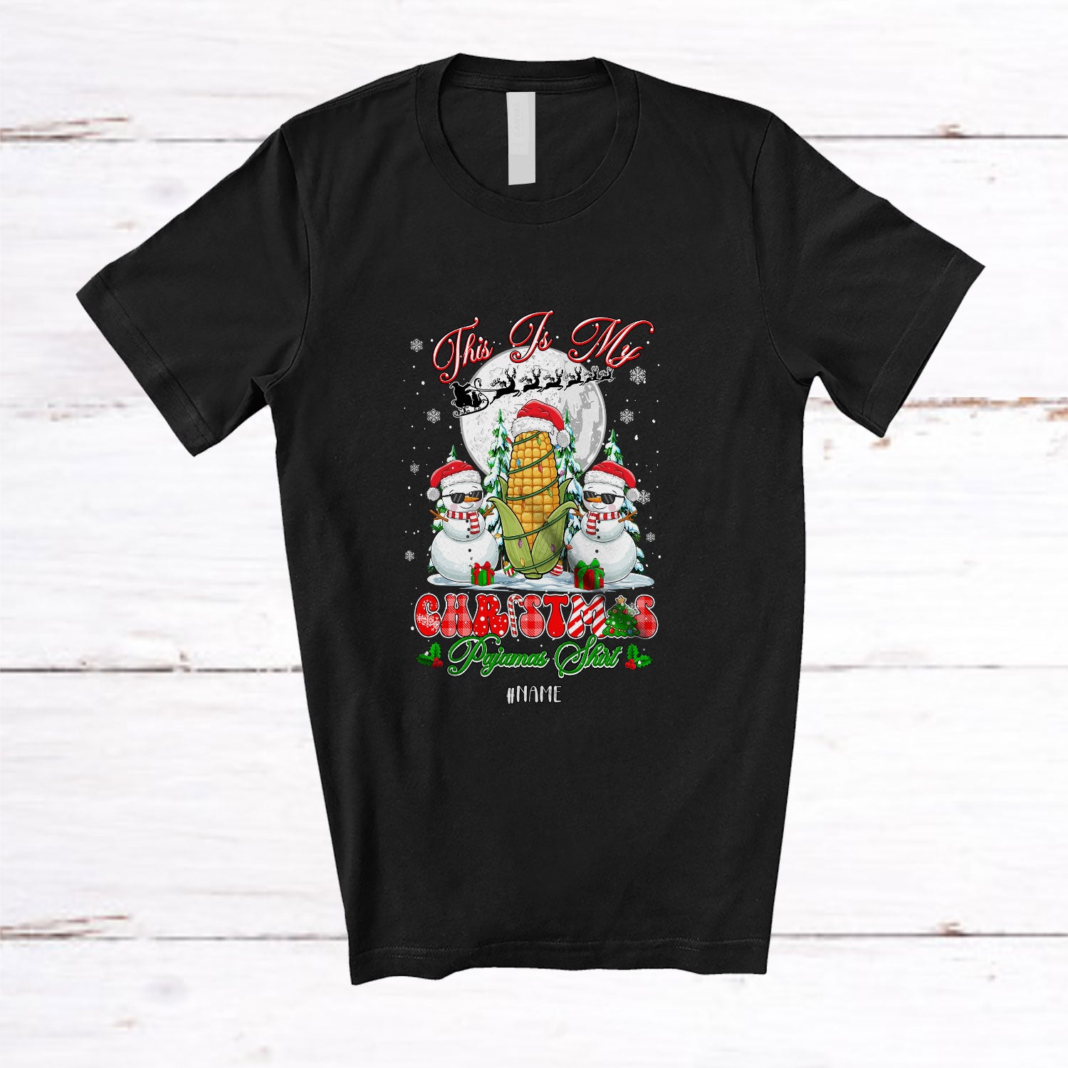 Personalized Custom Name My Christmas Pajamas Shirt; Lovely Corn Snowman; Vegetable Vegan T-Shirt. This cotton t-shirt is a durable staple product with a classic fit. One of the most popular items, it has a relaxed style made for everyday and casual wear.
