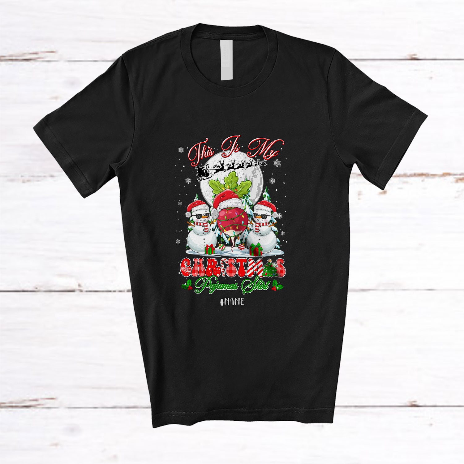 Personalized Custom Name My Christmas Pajamas Shirt; Lovely Radish Snowman; Vegetable Vegan T-Shirt