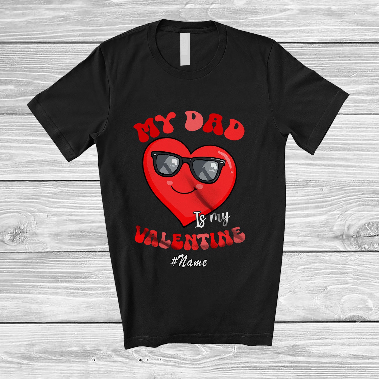 • Personalized Custom Name My Dad Is My Valentine; Adorable Heart Sunglasses; Girls Family T-Shirt. This cotton t-shirt is a durable staple product with a classic fit. One of the most popular items, it has a relaxed style made for everyday and casual wear.