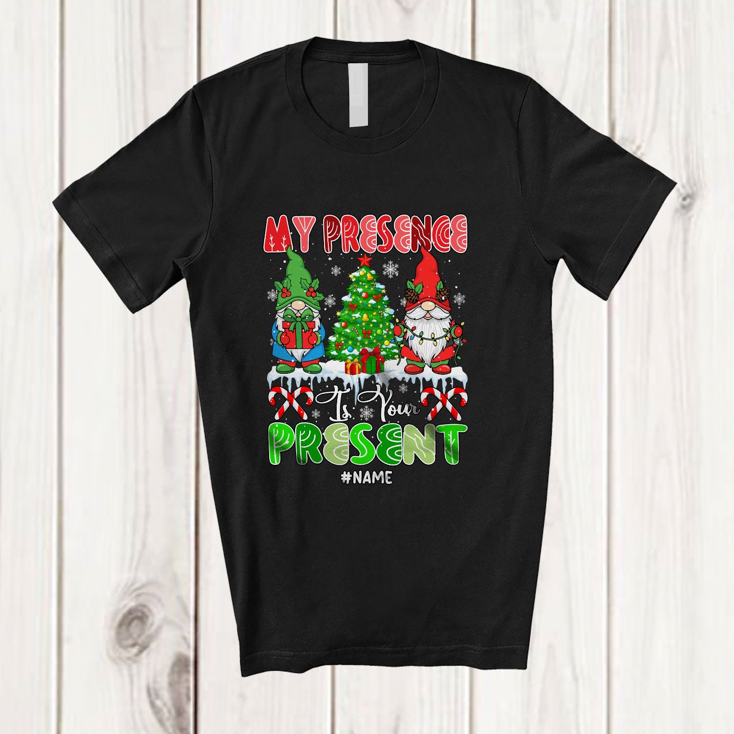 Personalized Custom Name My Presence Is Your Present; Awesome Christmas Tree Gnome T-Shirt