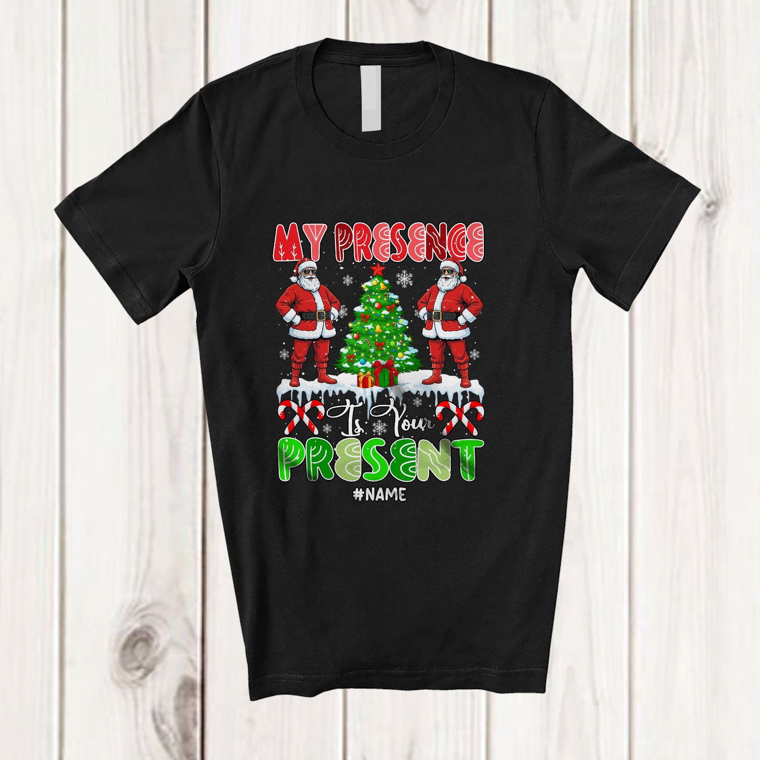 Personalized Custom Name My Presence Is Your Present; Awesome Christmas Tree Santa T-Shirt