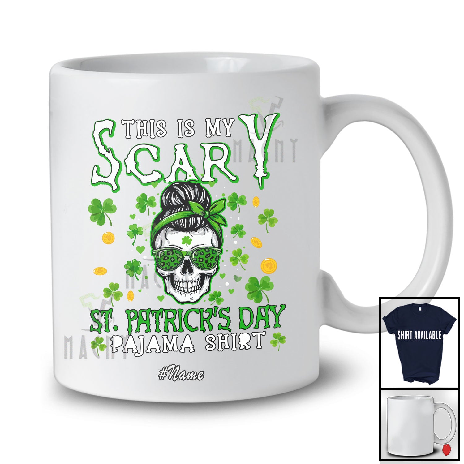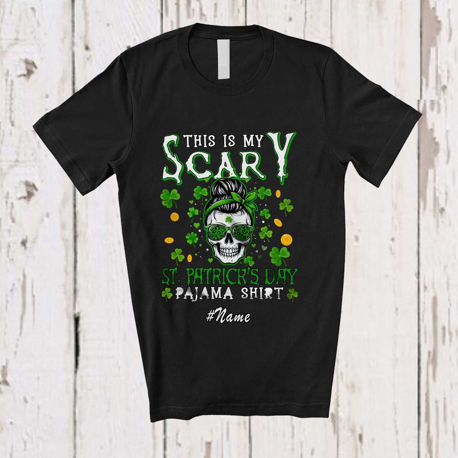 This Personalized Custom Name My Scary St. Patrick's Day; Humorous Messy Bun Hair Women Skull T-Shirt is great idea gift for your family, friends in this birthday, christmas, mother's day, father's day, patrick's day or any holiday.