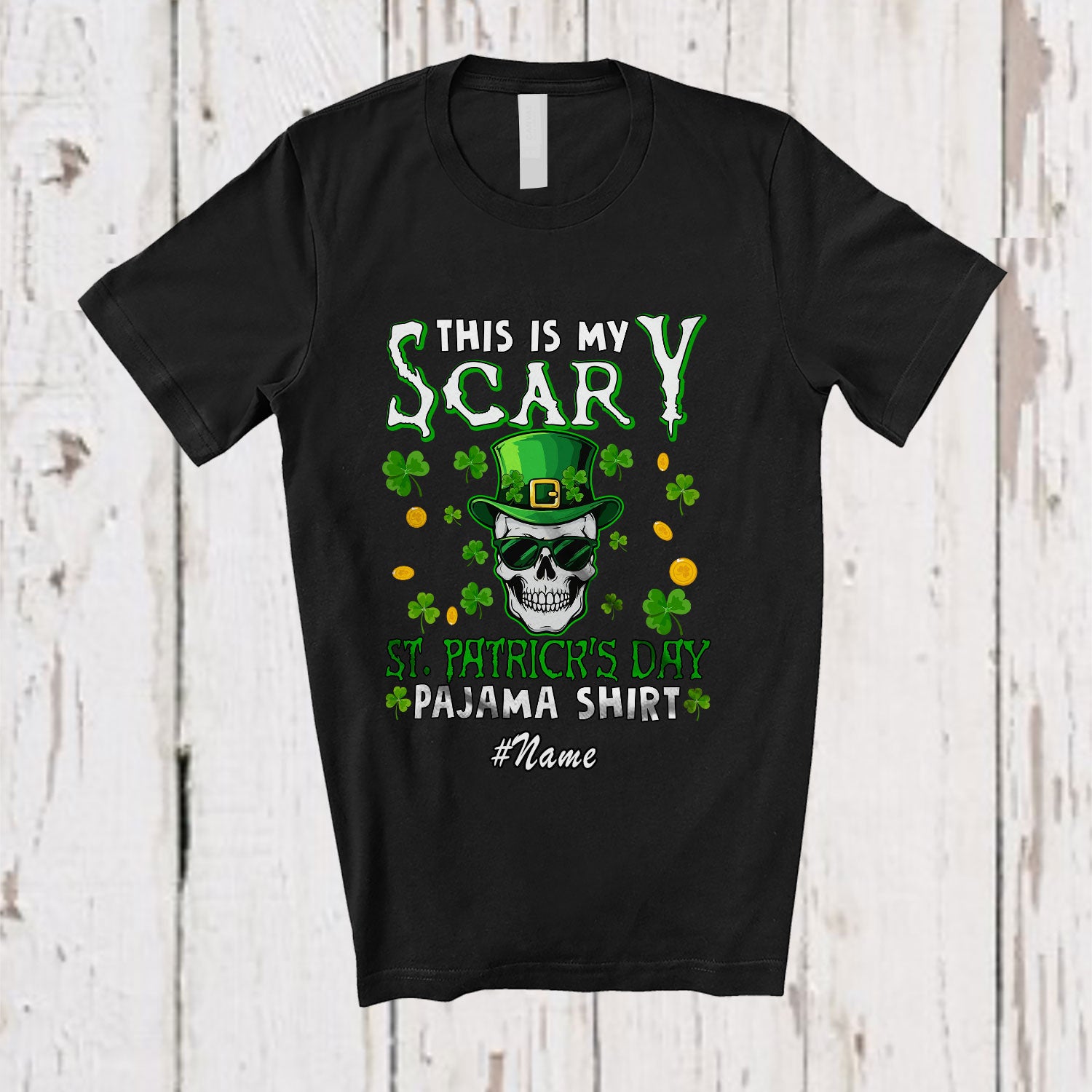 Personalized Custom Name My Scary St. Patrick's Day; Humorous Skull Boys Men Shamrock T-Shirt