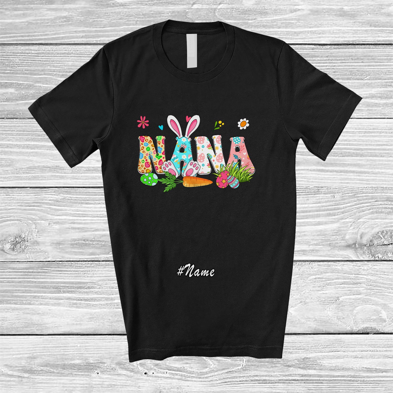 Personalized Custom Name Nana; Amazing Easter Day Bunny Flower Eggs Hunting Family Group T-Shirt