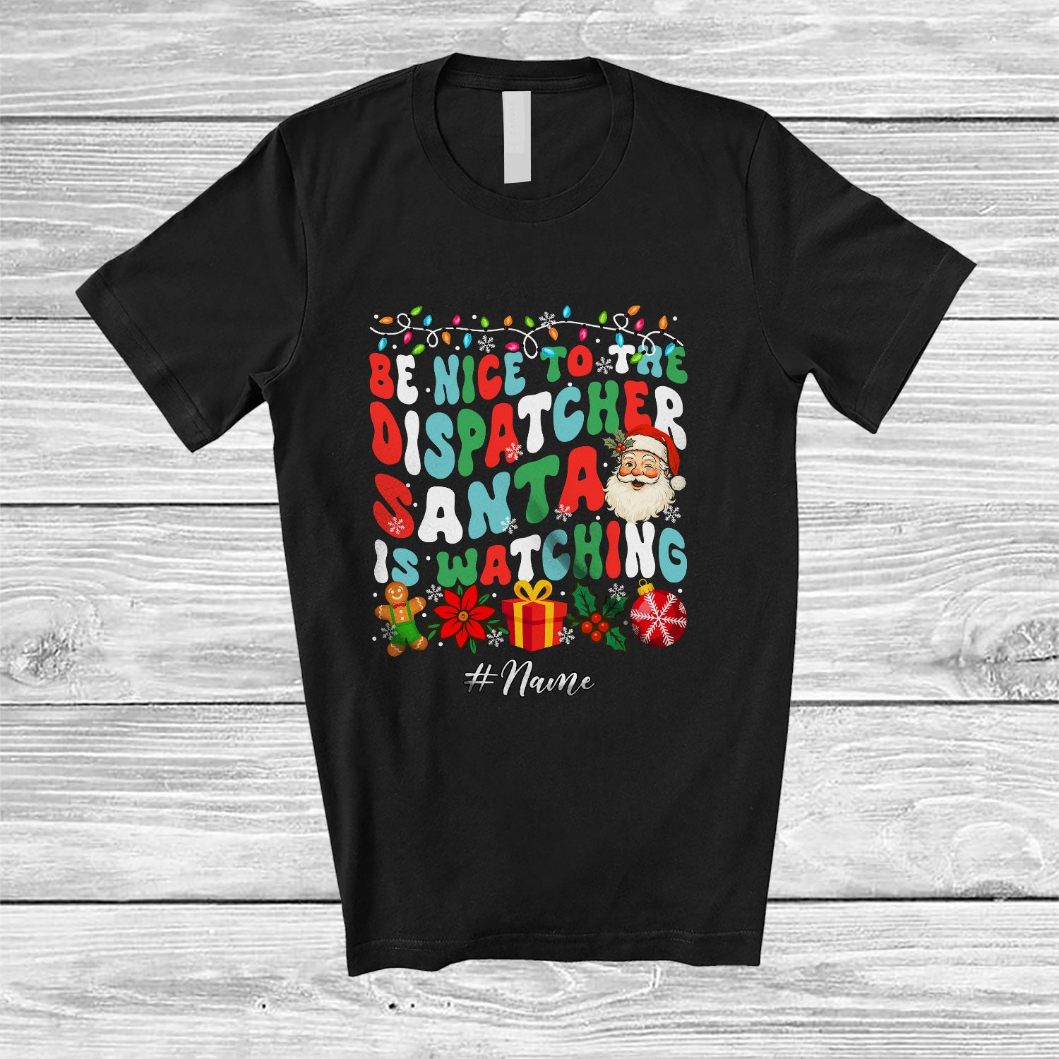 Personalized Custom Name Nice To Dispatcher Santa Watching; Lovely Christmas Groovy Jobs T-Shirt