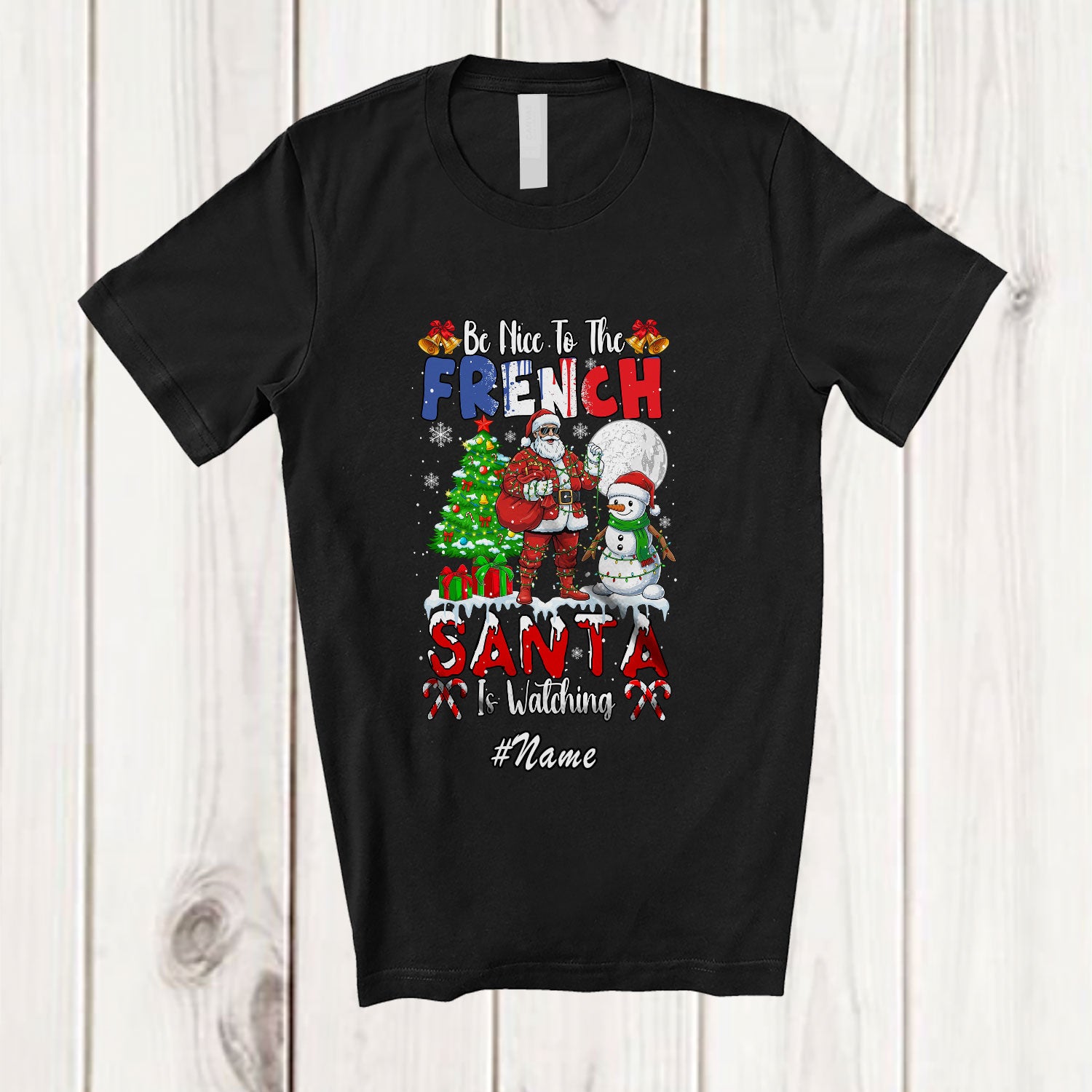 • Personalized Custom Name Nice To The French; Amazing Christmas Tree Santa Snowman T-Shirt. This cotton t-shirt is a durable staple product with a classic fit. One of the most popular items, it has a relaxed style made for everyday and casual wear.