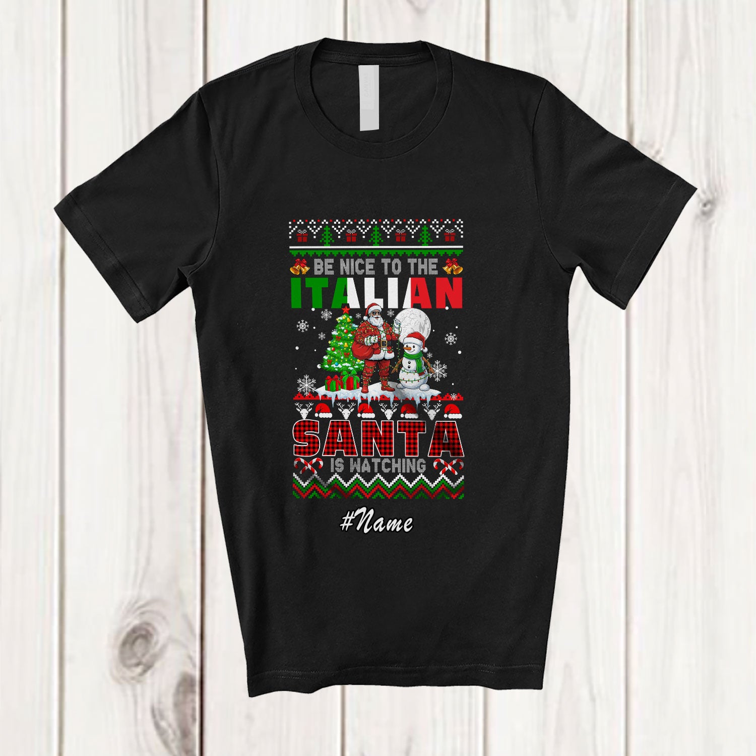 Personalized Custom Name Nice To The Italian; Amazing Christmas Sweater Santa Snowman T-Shirt. This cotton t-shirt is a durable staple product with a classic fit. One of the most popular items, it has a relaxed style made for everyday and casual wear.
