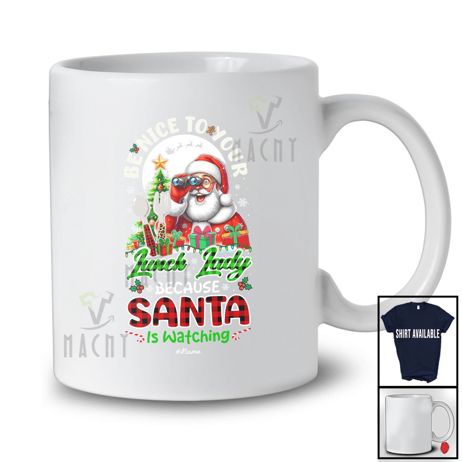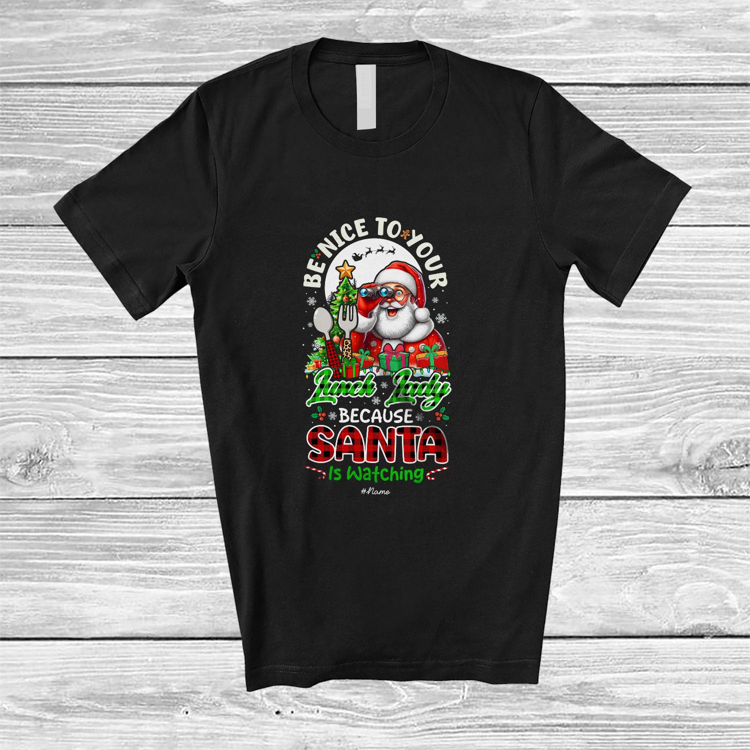 Personalized Custom Name Nice To Your Lunch Lady Santa; Awesome Christmas Tree Moon Plaid T-Shirt