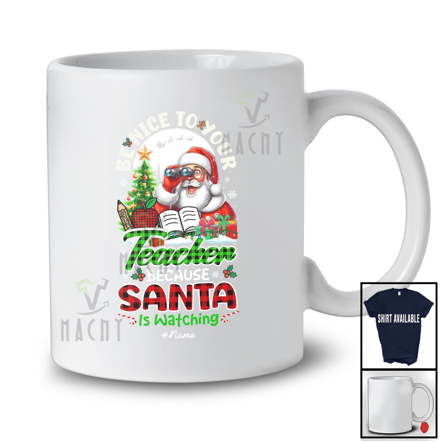 The Personalized Custom Name Nice To Your Teacher Santa; Awesome Christmas Tree Moon Plaid T-Shirt destined to impress, and priced at only $12.95, for a limited time.