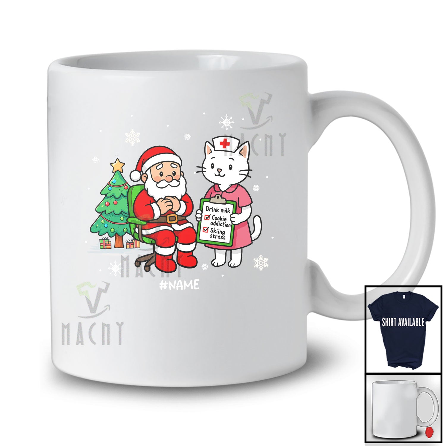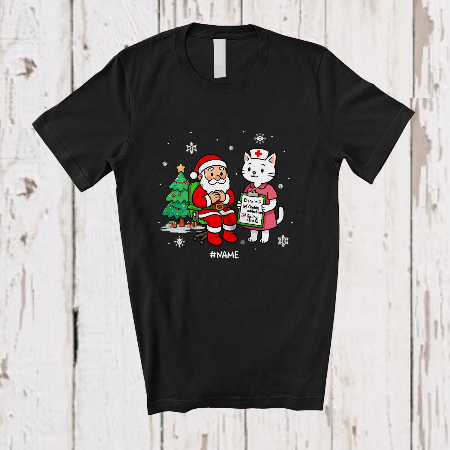 Personalized Custom Name Nurse Cat With Santa; Humorous Christmas Tree Cat Nursing T-Shirt