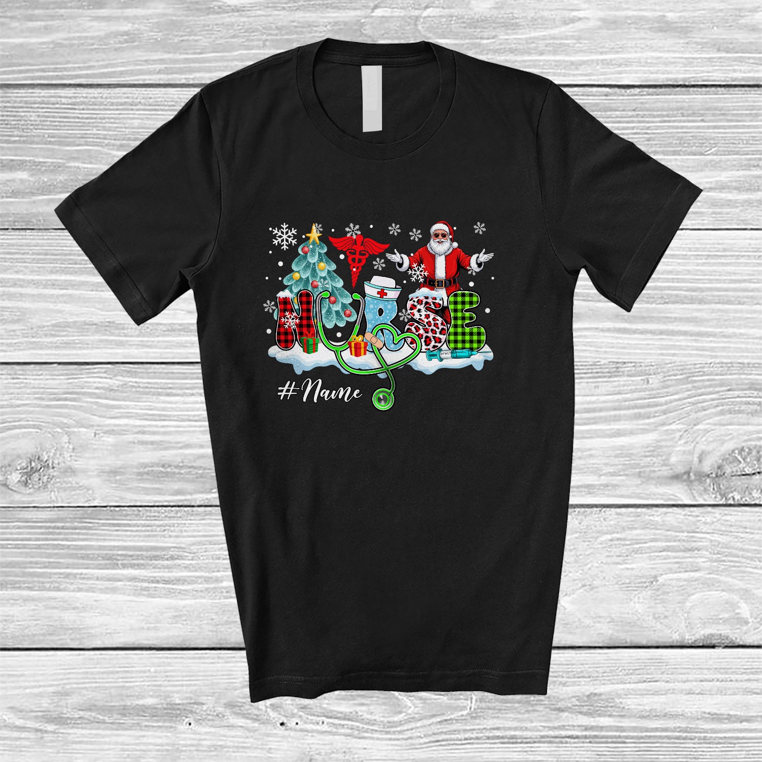 Personalized Custom Name Nurse; Fantastic Christmas Tree Santa Plaid Leopard; Proud Jobs T-Shirt