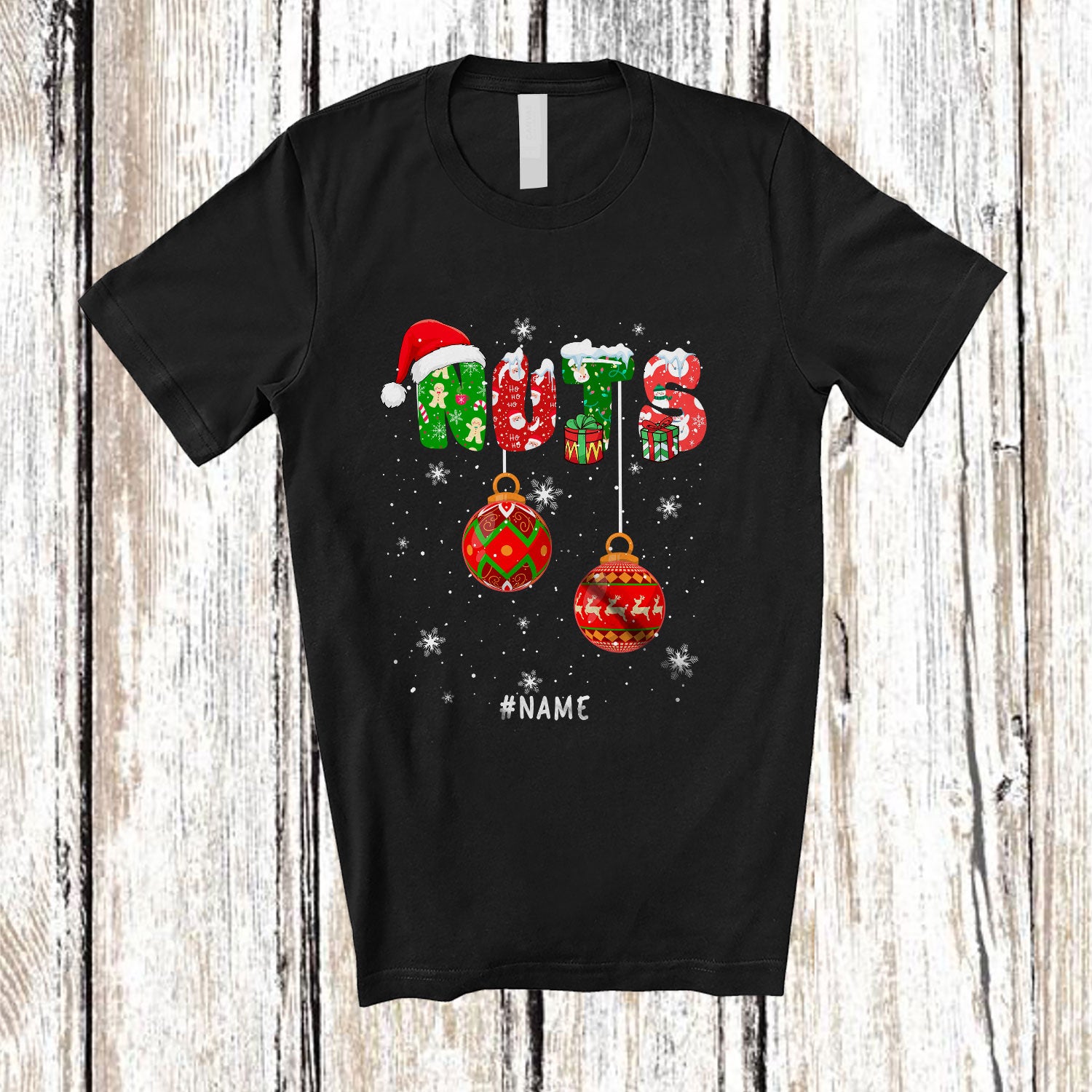 The Personalized Custom Name NUTS; Cheerful Christmas Santa Ornaments; X-mas Couple Family T-Shirt destined to impress, and priced at only $12.95, for a limited time.