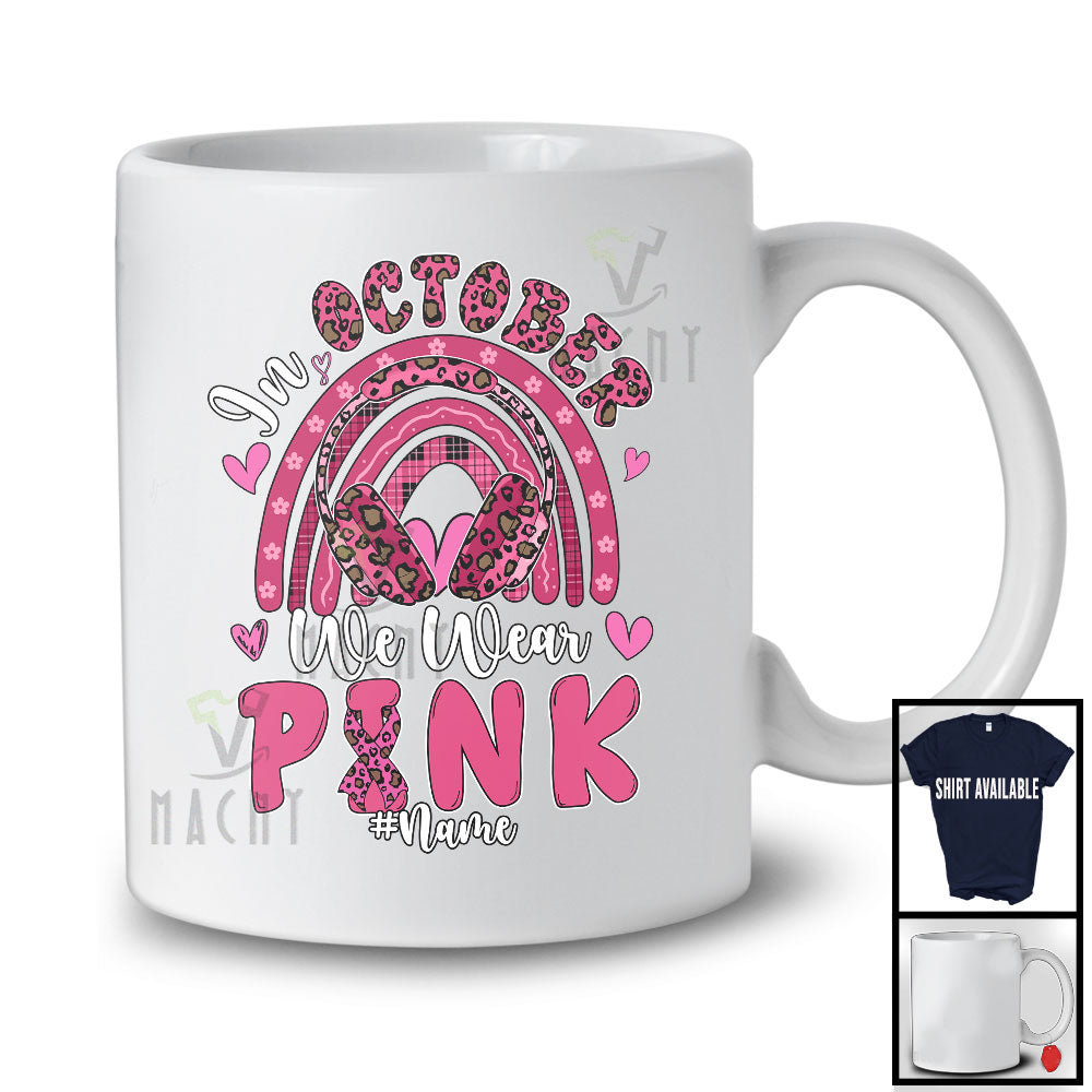 Personalized Custom Name October We Wear Pink; Lovely Breast Cancer Ribbon; Dispatcher Rainbow T-Shirt