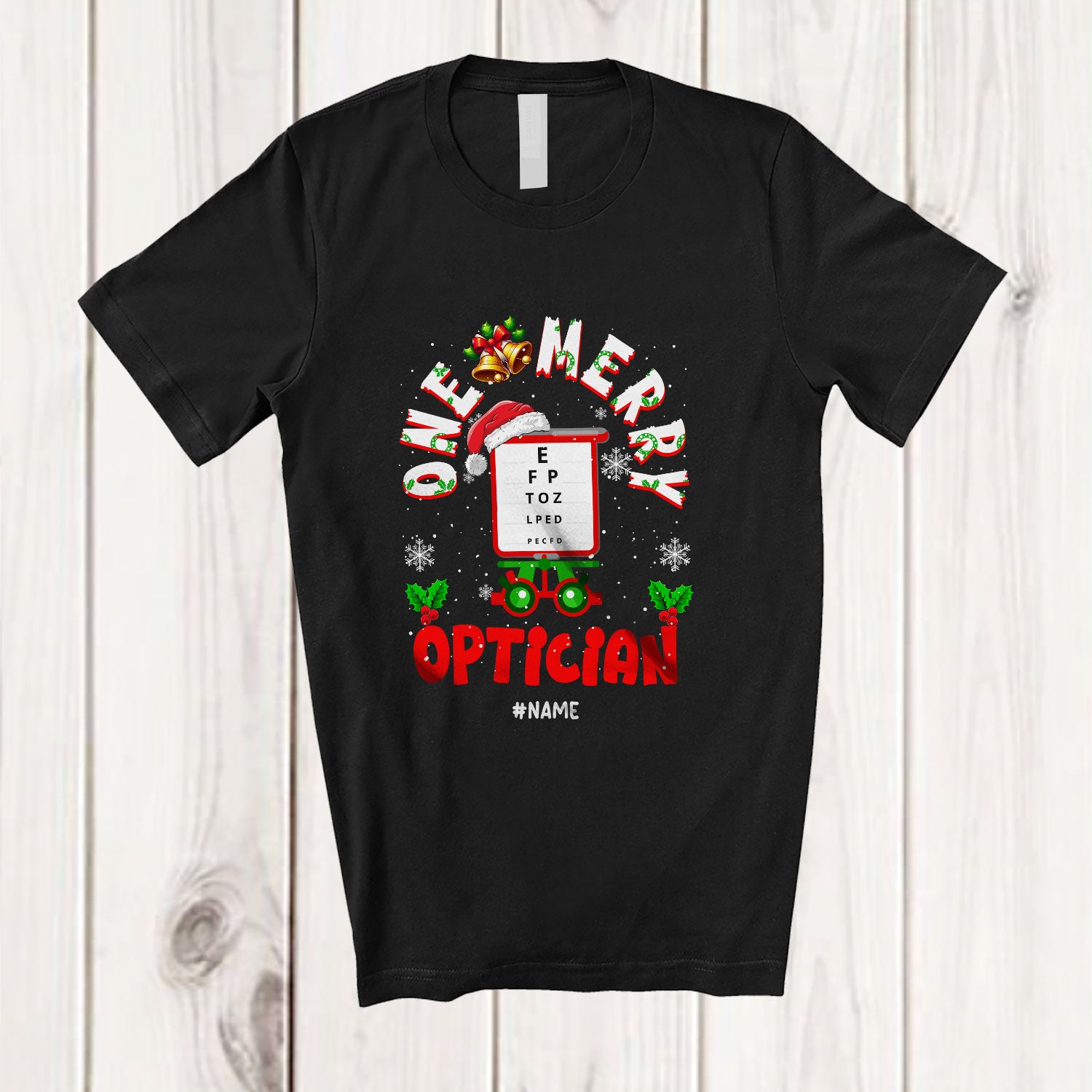 Personalized Custom Name One Merry Optician; Fantastic Christmas Santa Jobs Careers T-Shirt