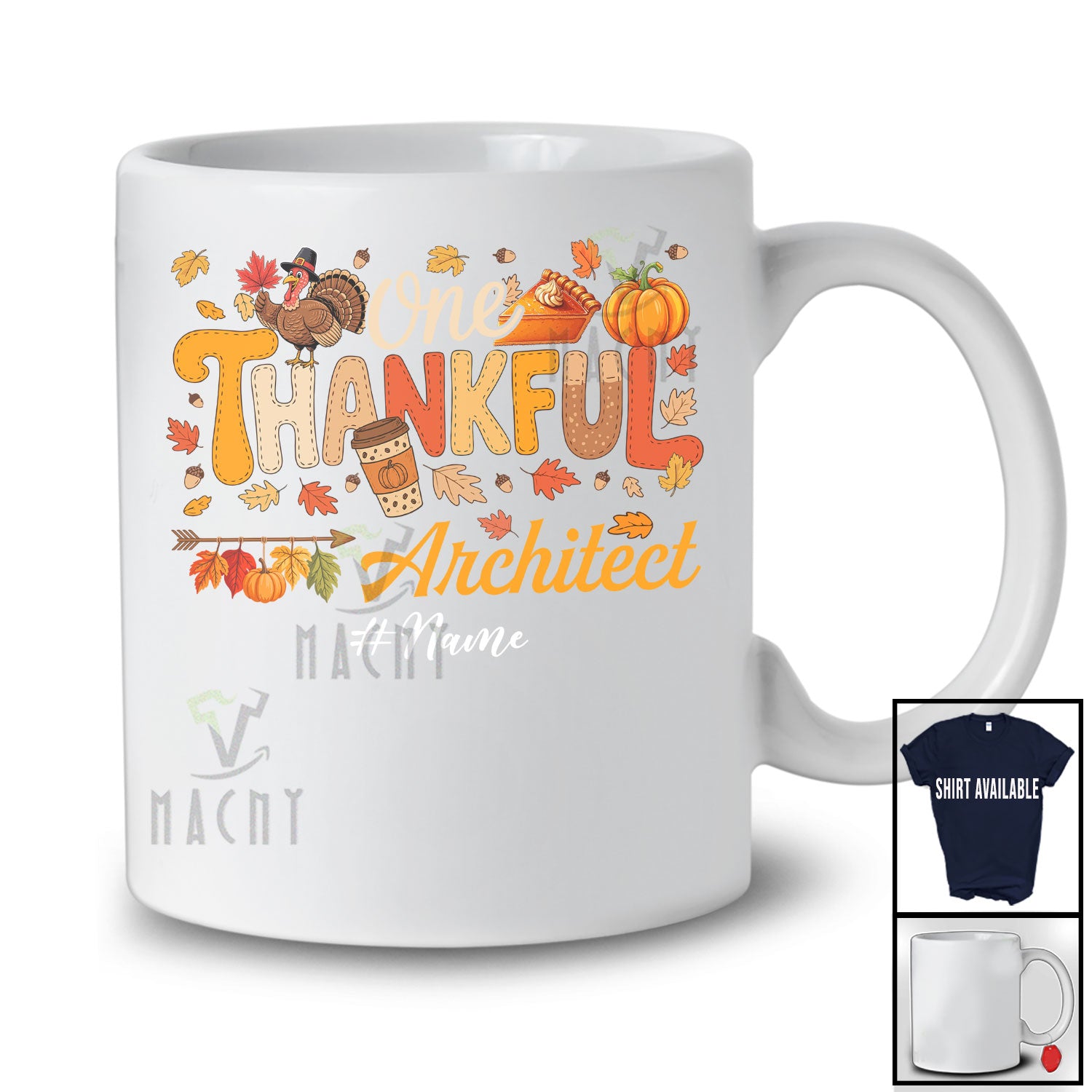 • Personalized Custom Name One Thankful Architect; Proud Thanksgiving Jobs Fall Pumpkin Pie Turkey T-Shirt. This cotton t-shirt is a durable staple product with a classic fit. One of the most popular items, it has a relaxed style made for everyday and casual wear.