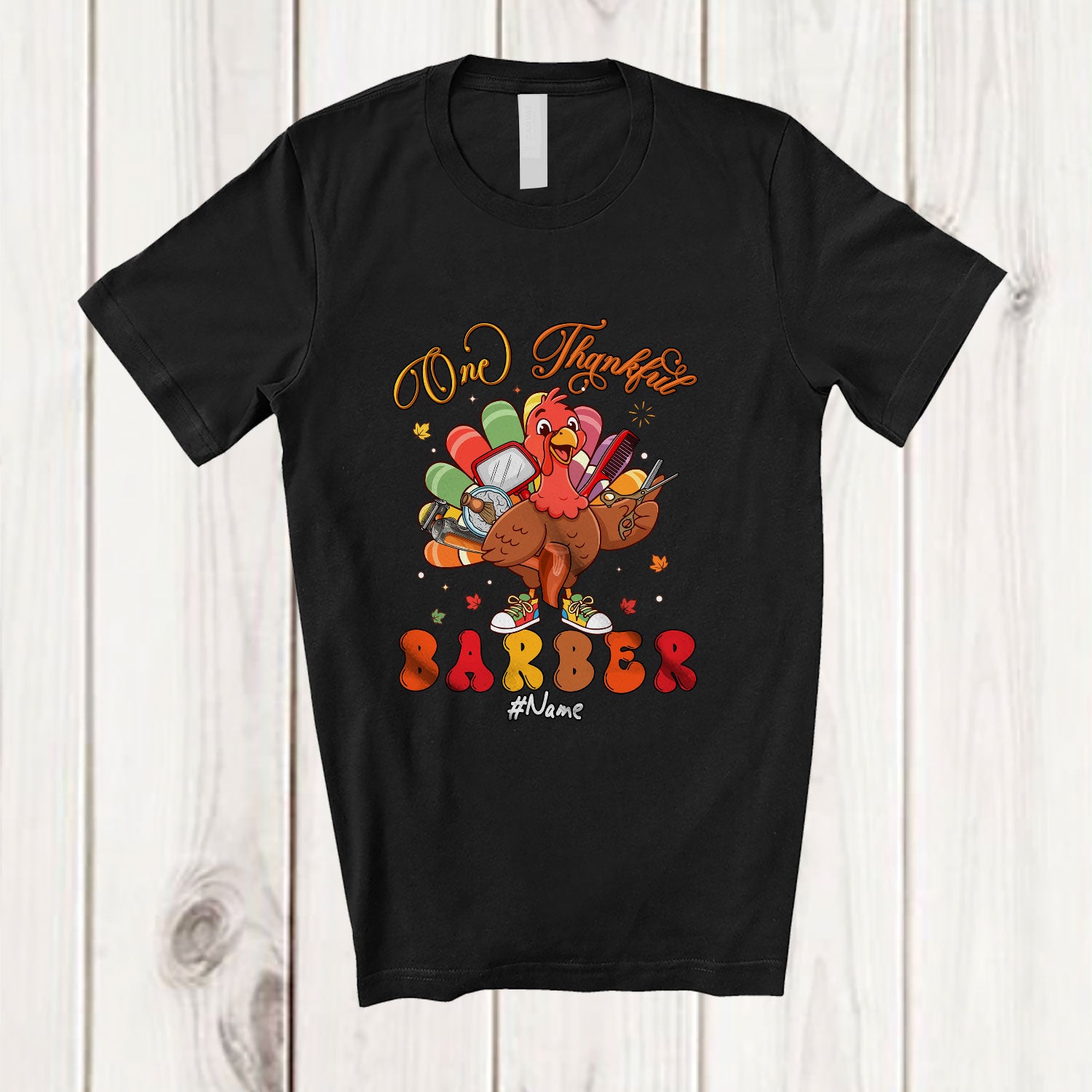Personalized Custom Name One Thankful Barber; Lovely Thanksgiving Turkey Proud Job T-Shirt