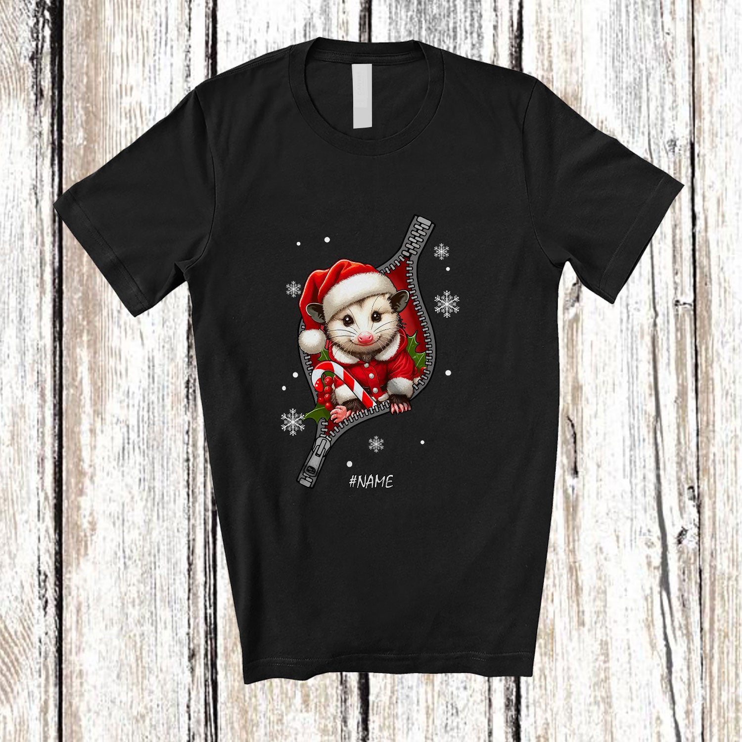 Personalized Custom Name Opossum Santa Going Out; Lovely Christmas Pajama Family T-Shirt. This cotton t-shirt is a durable staple product with a classic fit. One of the most popular items, it has a relaxed style made for everyday and casual wear.