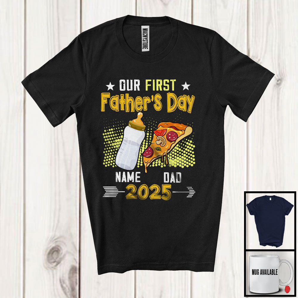 Personalized Custom Name Our First Father's Day, Humorous Pizza Milk Bottle 2025, Cheers Family T-Shirt