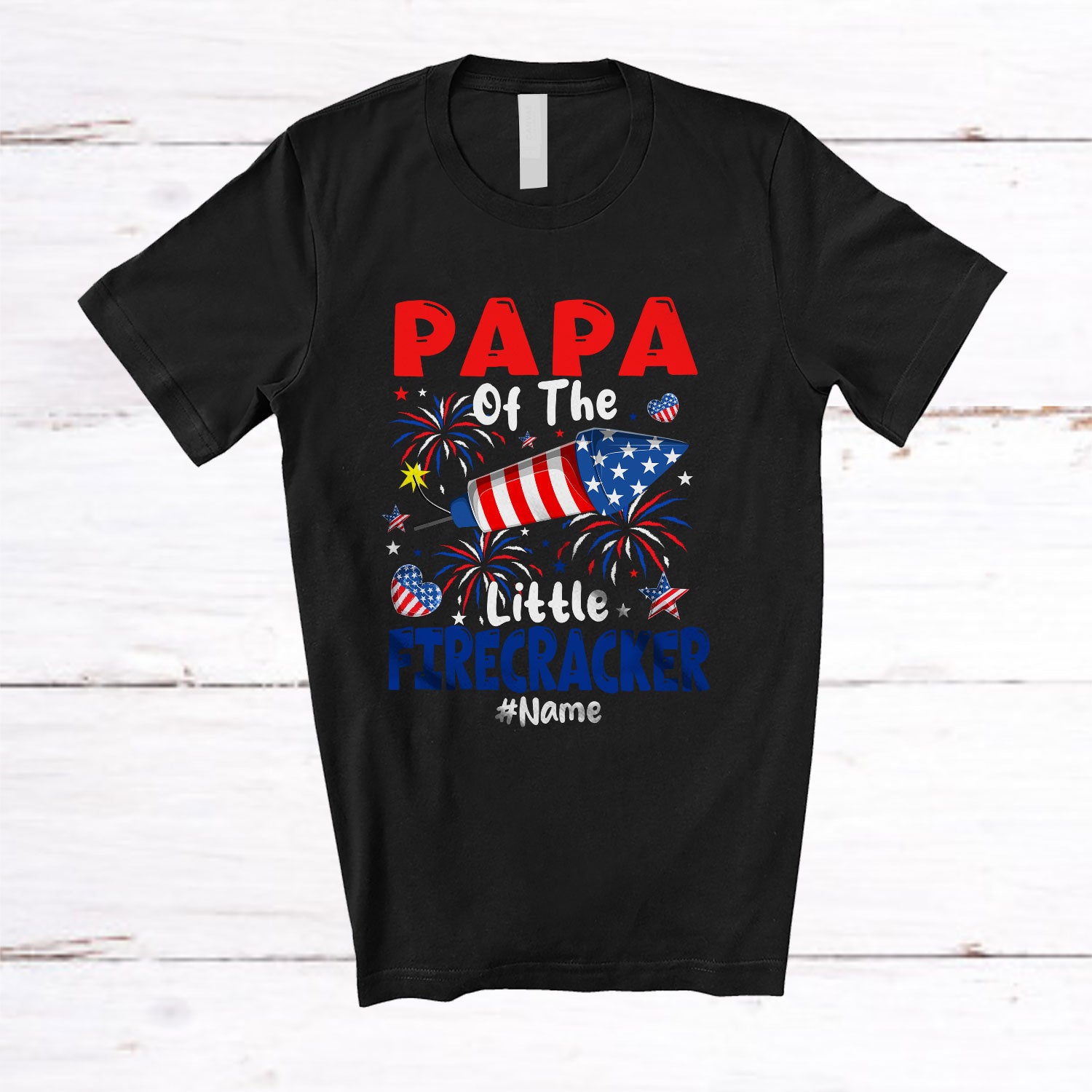 Personalized Custom Name Papa Of Little Firecracker; Amusing 4th Of July Pregnancy T-Shirt