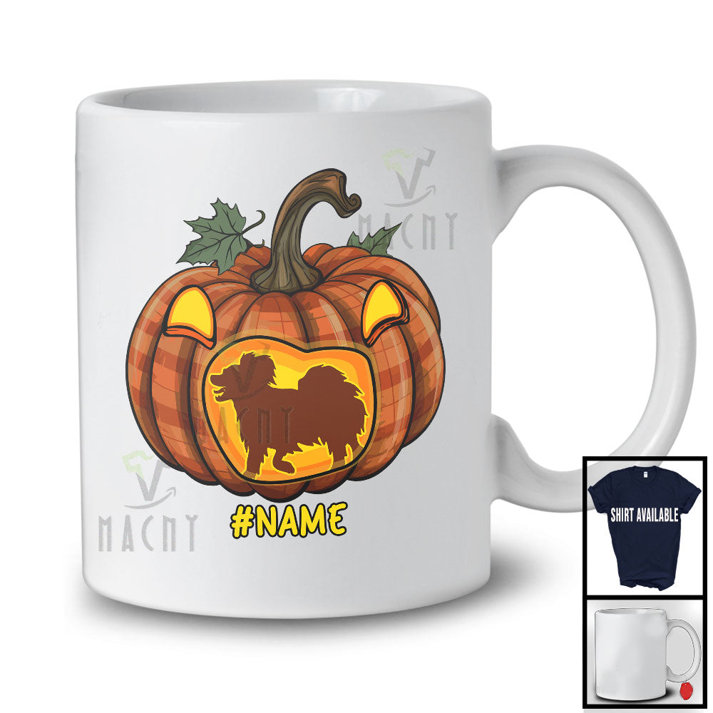 • Personalized Custom Name Papillon In Plaid Pumpkin; Creepy Halloween Animal Family T-Shirt. This cotton t-shirt is a durable staple product with a classic fit. One of the most popular items, it has a relaxed style made for everyday and casual wear.
