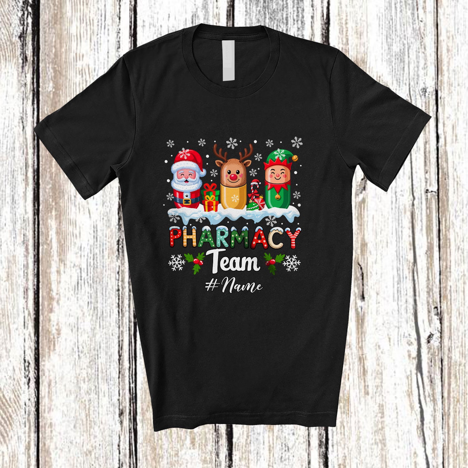 Personalized Custom Name Pharmacy Team; Adorable Christmas Three Pills; Pharmacist Lover T-Shirt