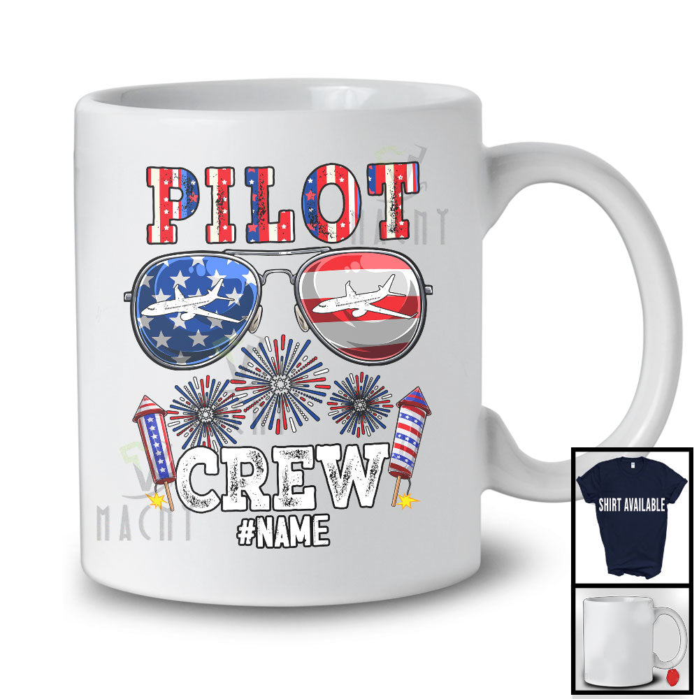 Personalized Custom Name Pilot Crew, Joyful 4th Of July USA Sunglasses, Careers Patriotic T-Shirt. This cotton t-shirt is a durable staple product with a classic fit. One of the most popular items, it has a relaxed style made for everyday and casual wear.