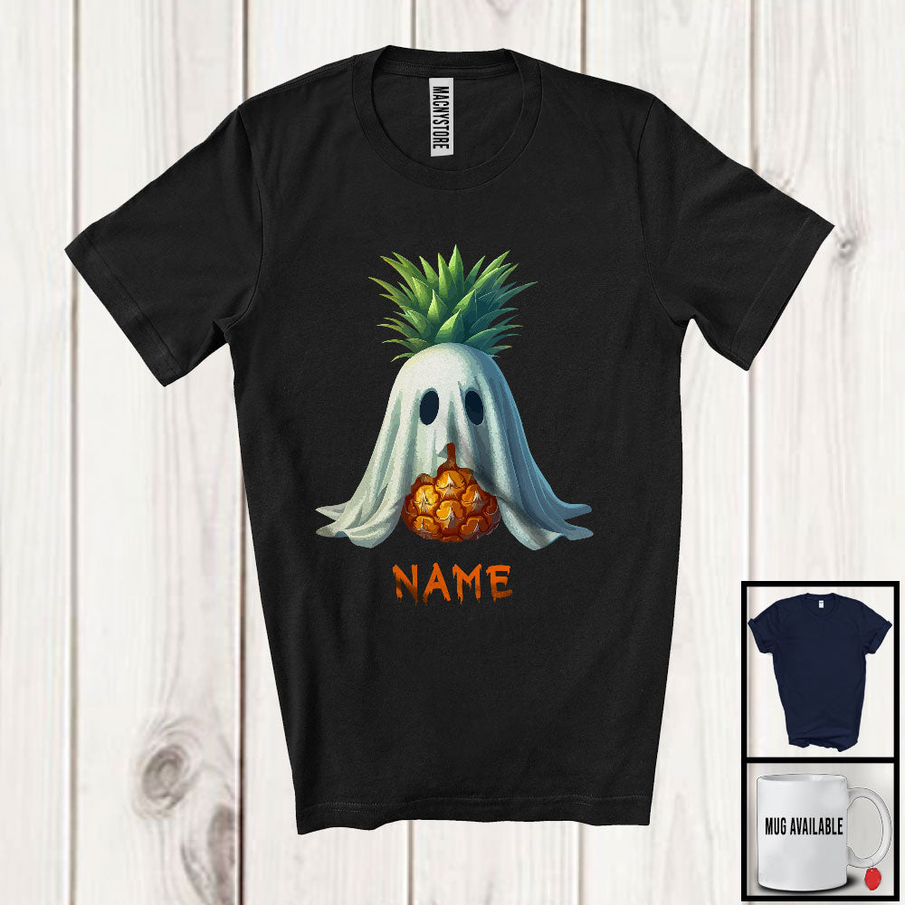 Personalized Custom Name Pineapple Boo Ghost Cosplay, Horror Halloween Fruit Vegan, Family T-Shirt. This cotton t-shirt is a durable staple product with a classic fit. One of the most popular items, it has a relaxed style made for everyday and casual wear.