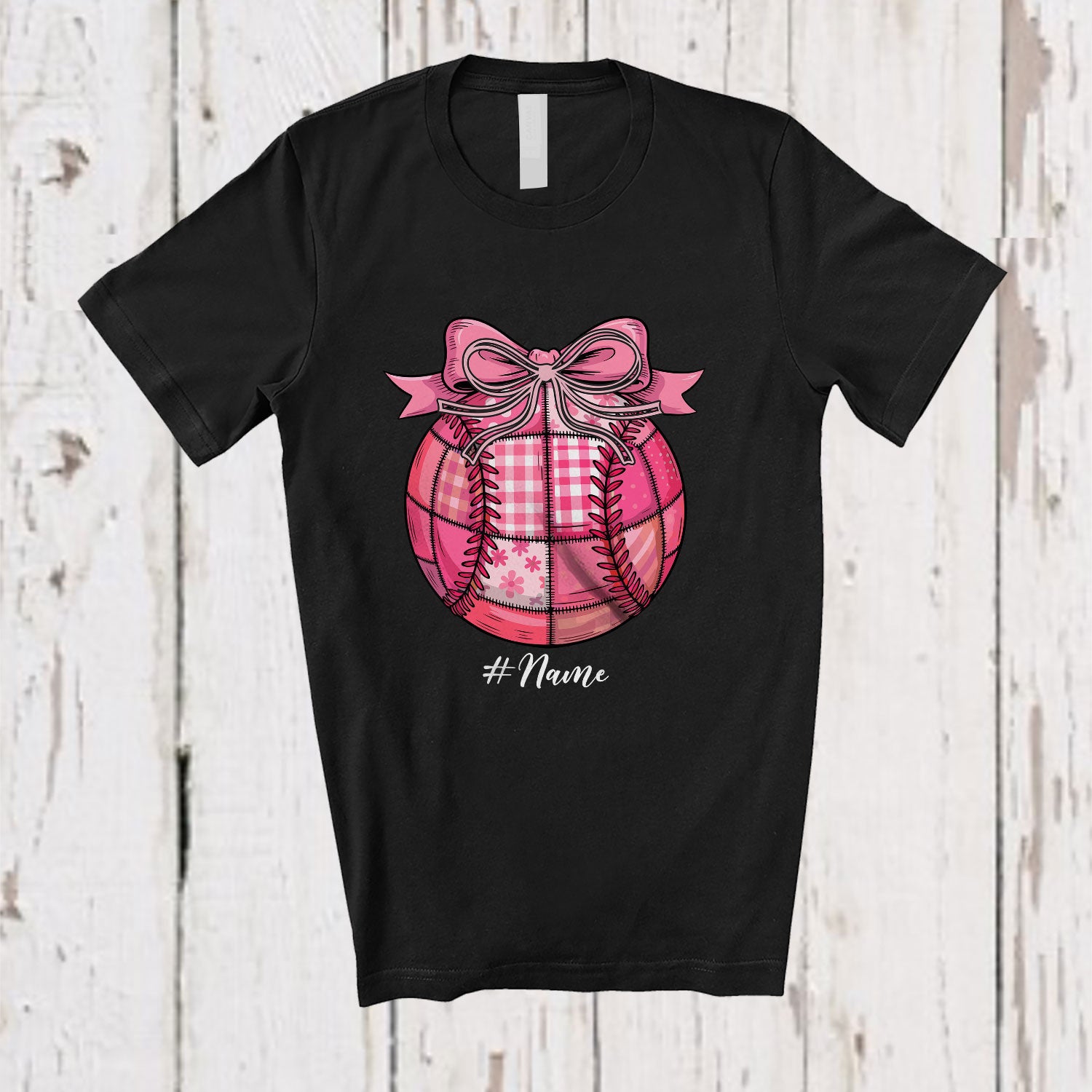 Personalized Custom Name Preppy Plaid Pink Softball; Lovely Halloween Softball Player T-Shirt