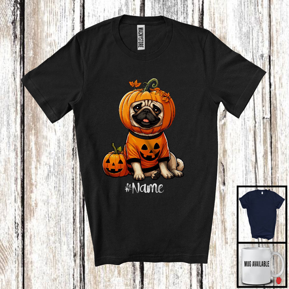 Personalized Custom Name Pumpkin Pug; Humorous Halloween Costume Family T-Shirt