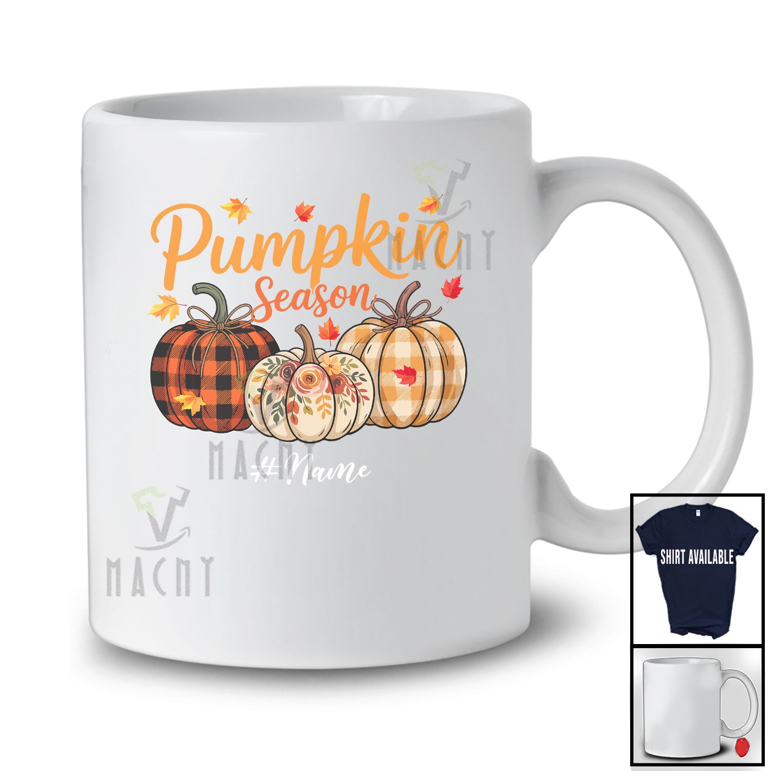 The Personalized Custom Name Pumpkin Season; Lovely Thanksgiving Three Plaid Floral Pumpkins Farmer T-Shirt destined to impress, and priced at only $12.95, for a limited time.
