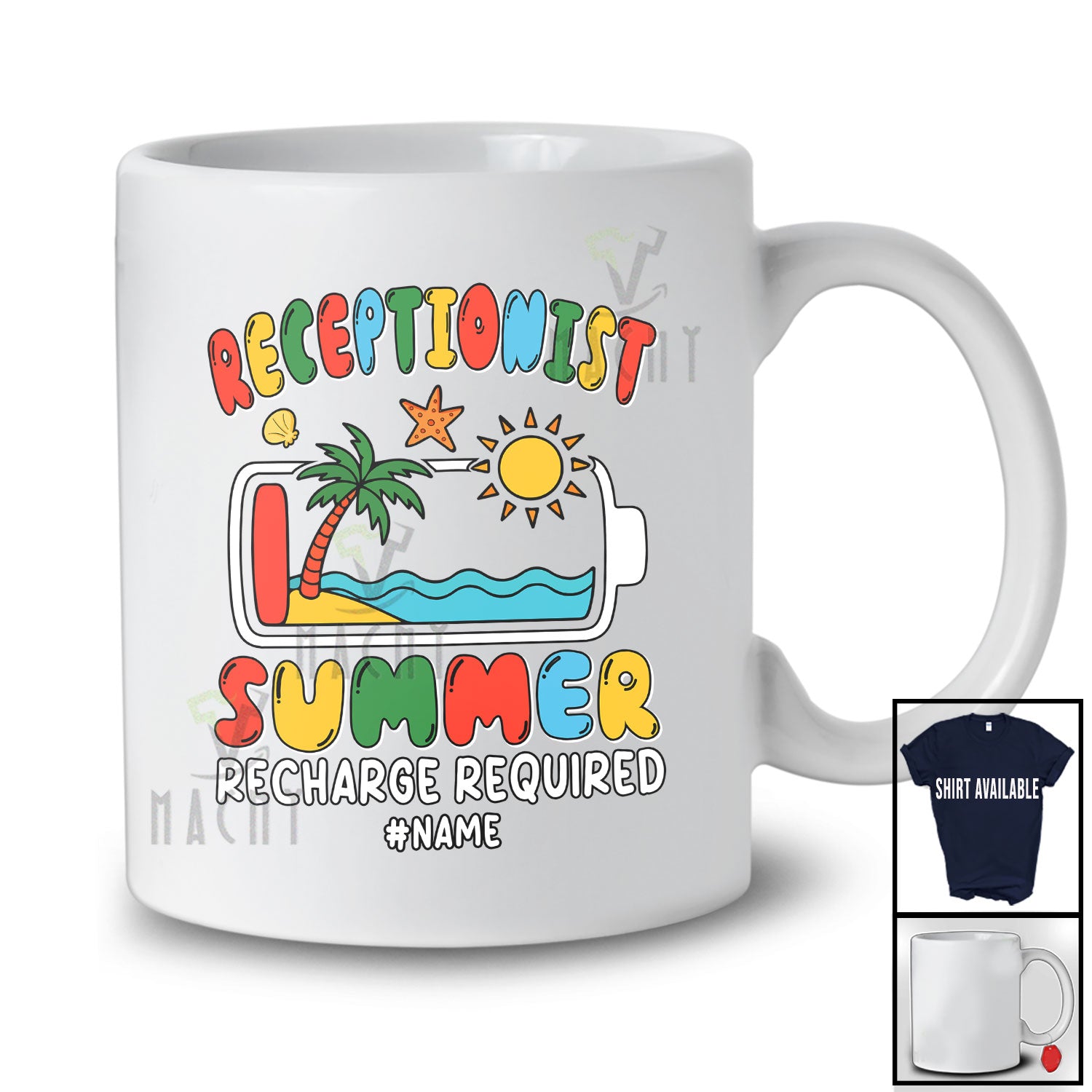 This Personalized Custom Name Receptionist Summer Recharge; Proud Last Day Of School Low Battery T-Shirt is great idea gift for your family, friends in this birthday, christmas, mother's day, father's day, patrick's day or any holiday.