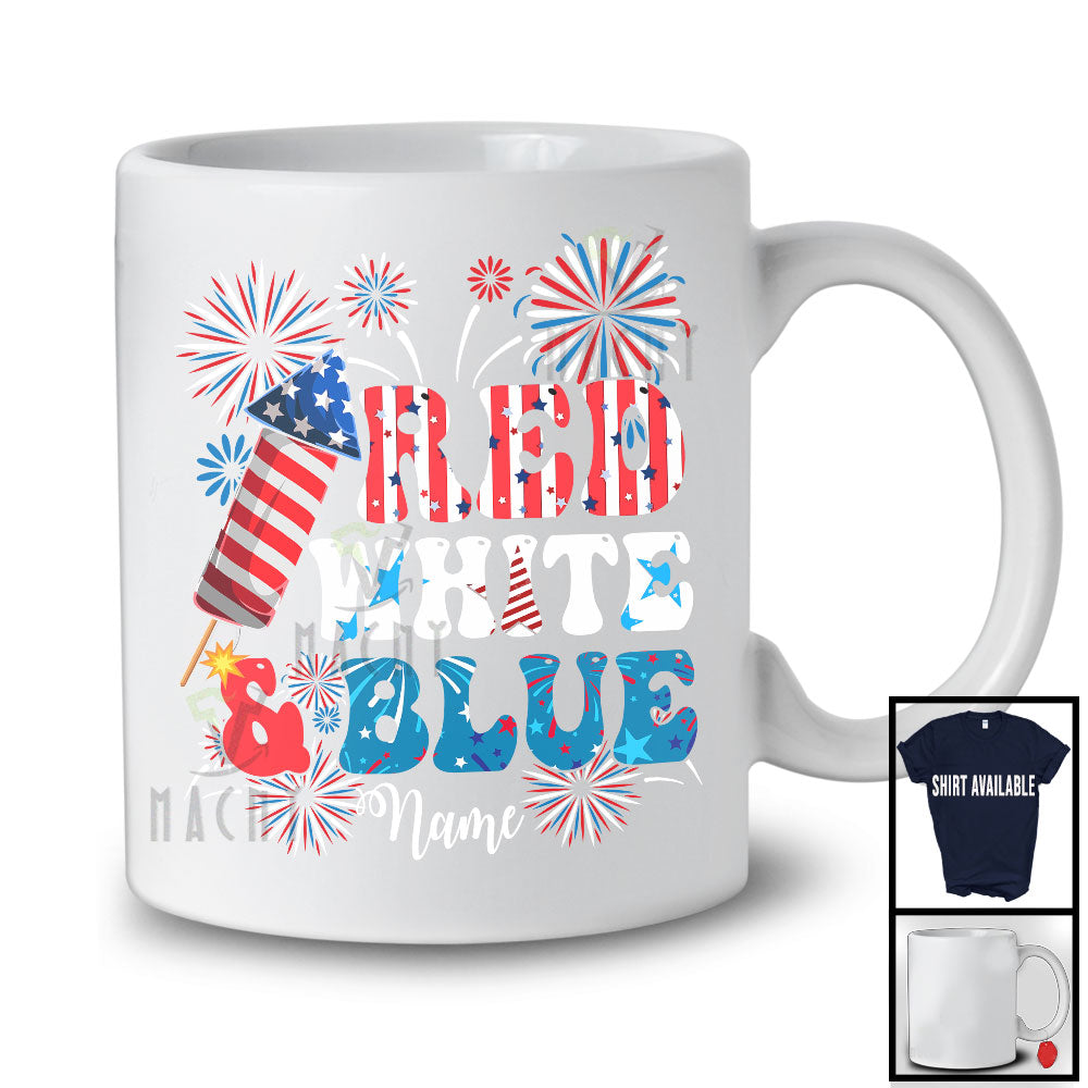 • Personalized Custom Name Red White Blue, Joyful 4th Of July Firecracker, American Flag Patriotic T-Shirt. This cotton t-shirt is a durable staple product with a classic fit. One of the most popular items, it has a relaxed style made for everyday and casual wear.