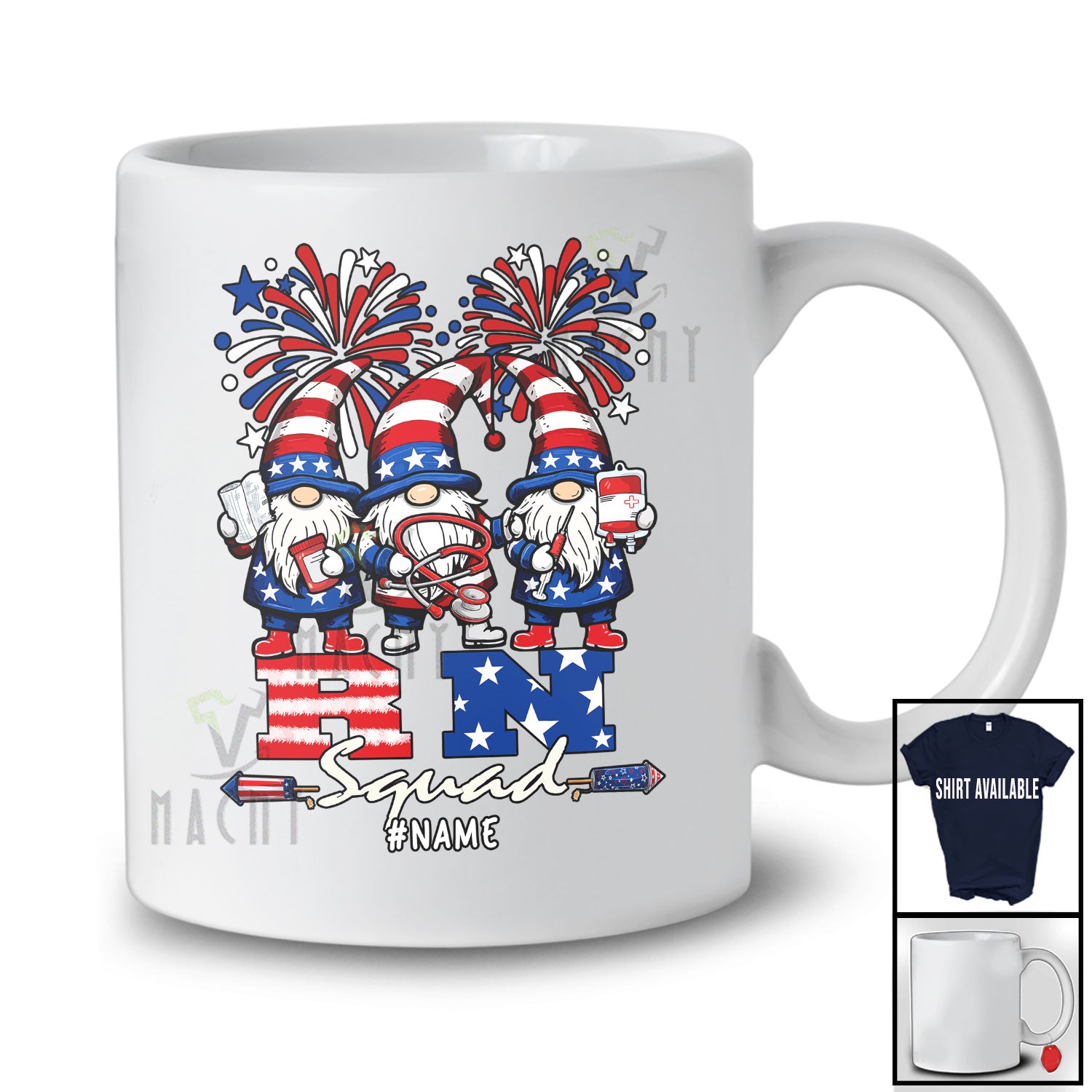 Personalized Custom Name RN Squad; Lovely 4th of July Three Gnomes; Patriotic Hospital Careers T-Shirt. This cotton t-shirt is a durable staple product with a classic fit. One of the most popular items, it has a relaxed style made for everyday and casual wear.