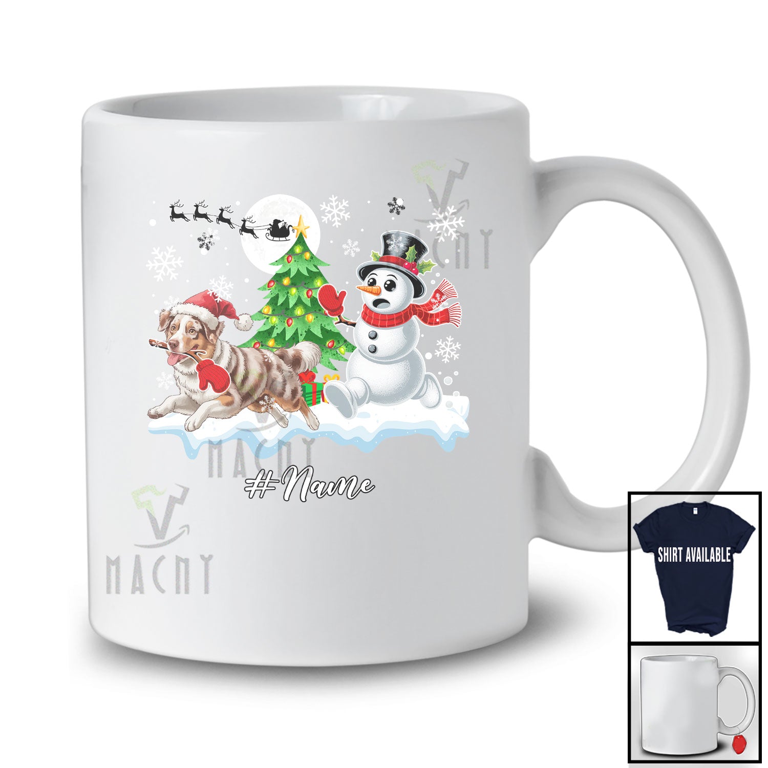 Personalized Custom Name Santa Aussie Snowman; Lovely Christmas Tree Friends Family T-Shirt. This cotton t-shirt is a durable staple product with a classic fit. One of the most popular items, it has a relaxed style made for everyday and casual wear.