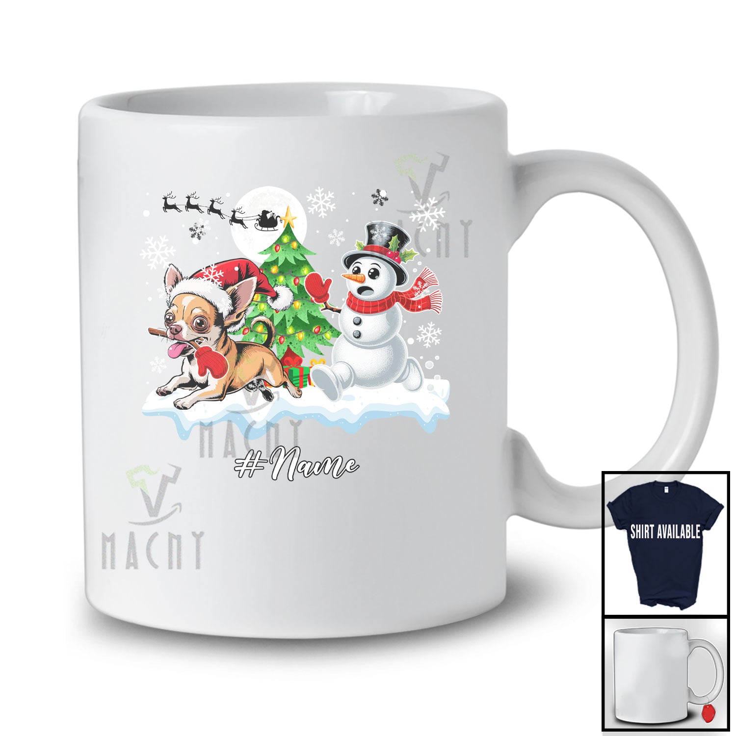 Personalized Custom Name Santa Chihuahua Snowman; Lovely Christmas Tree Friends Family T-Shirt. This cotton t-shirt is a durable staple product with a classic fit. One of the most popular items, it has a relaxed style made for everyday and casual wear.