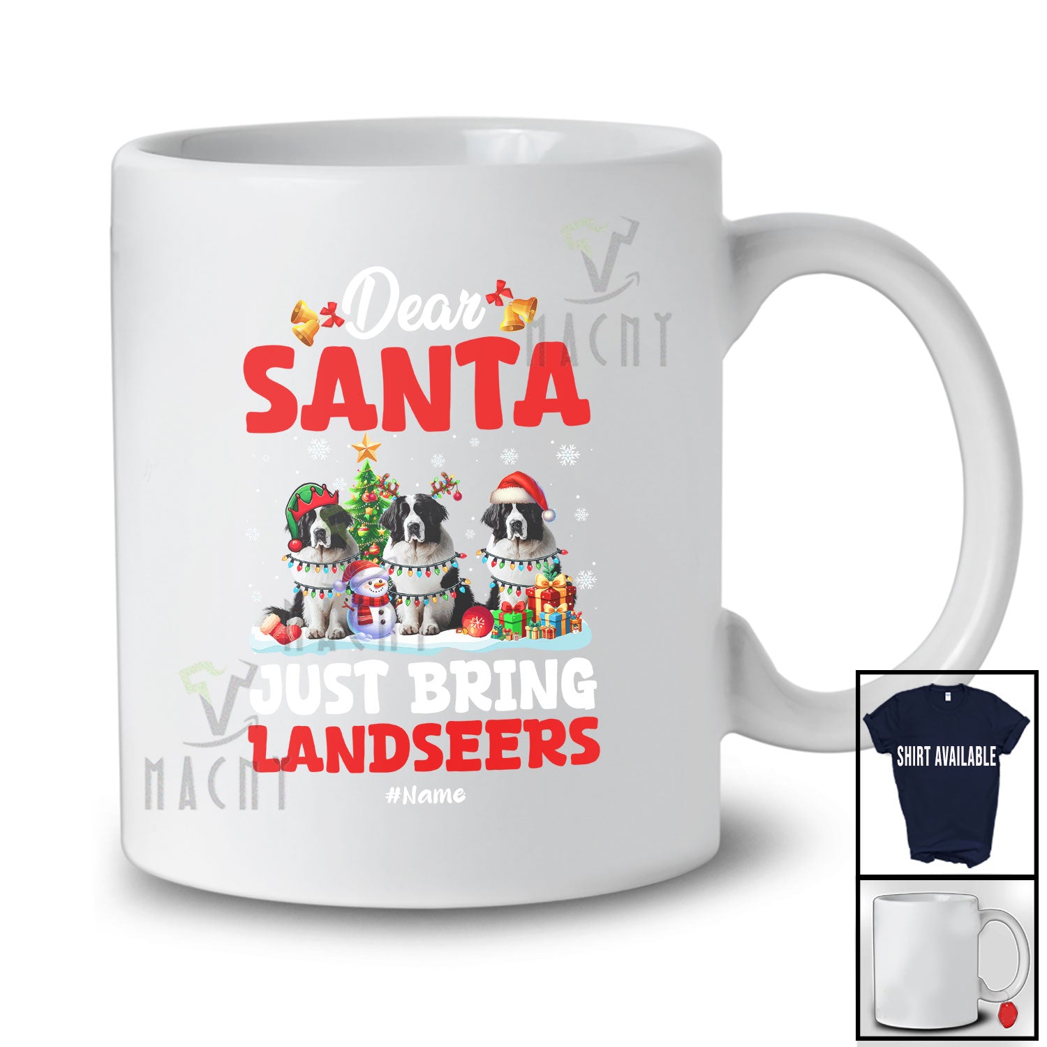 Every product is unique, just like you. If you're looking for a product that fits the mold of your life, the Personalized Custom Name Santa Just Bring Landseers; Lovely Christmas Lights Tree Family T-Shirt is for you.