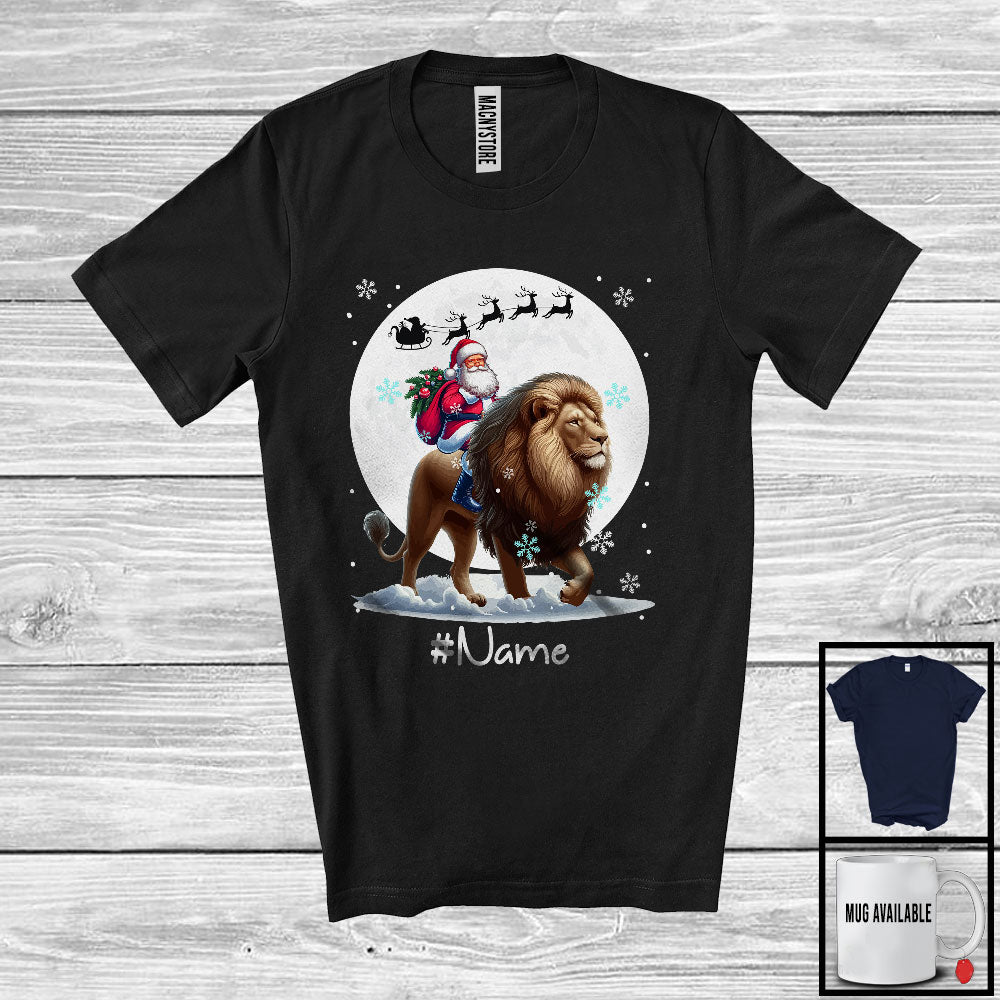 Personalized Custom Name Santa Riding Lion, Merry Christmas Moon Snow Lion, X-mas Team T-Shirt