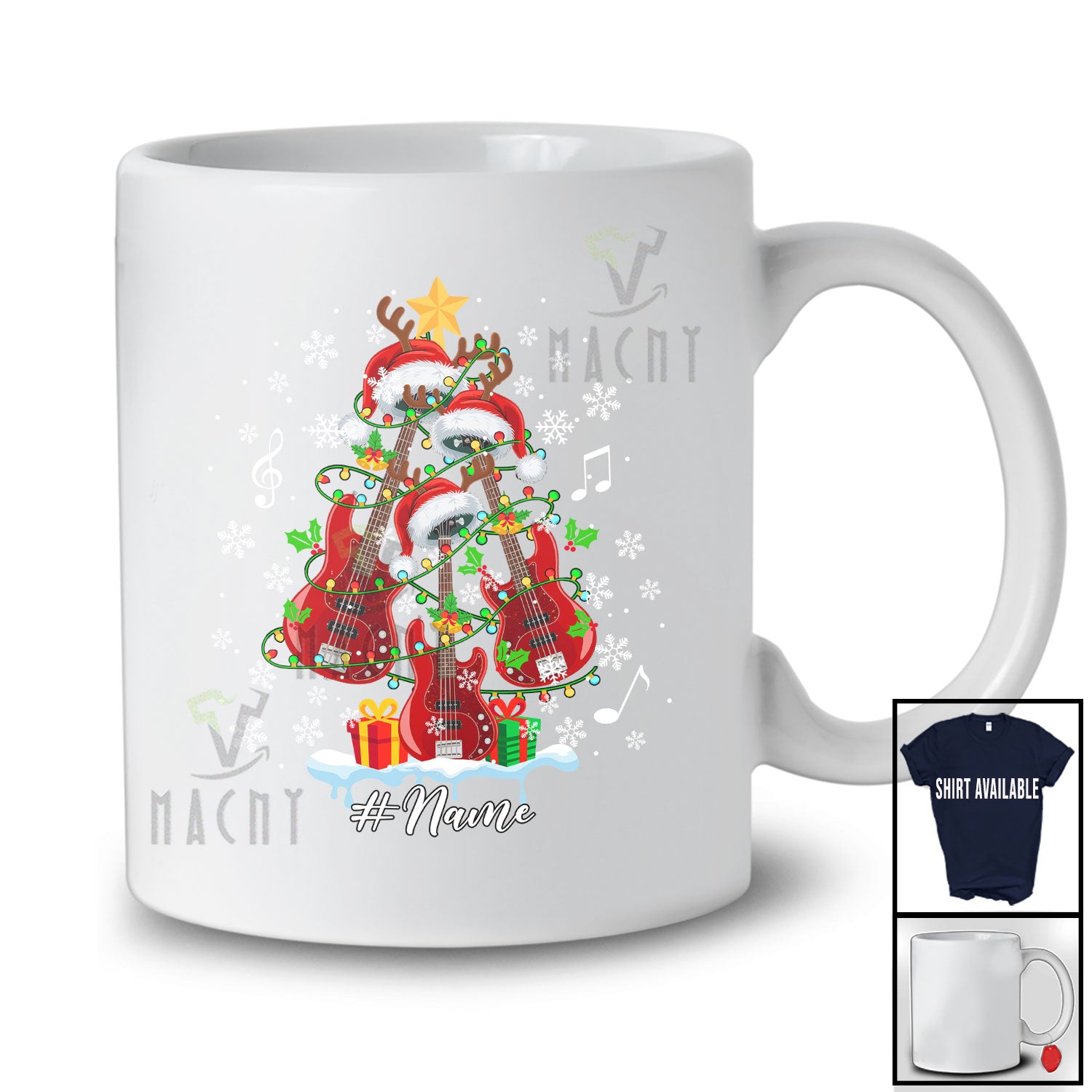 new MacnyStore - Personalized Custom Name Santa Rock Guitar Christmas Tree; Joyful X-mas Guitar Bass Player Guitarist T-Shirt – Macnystore