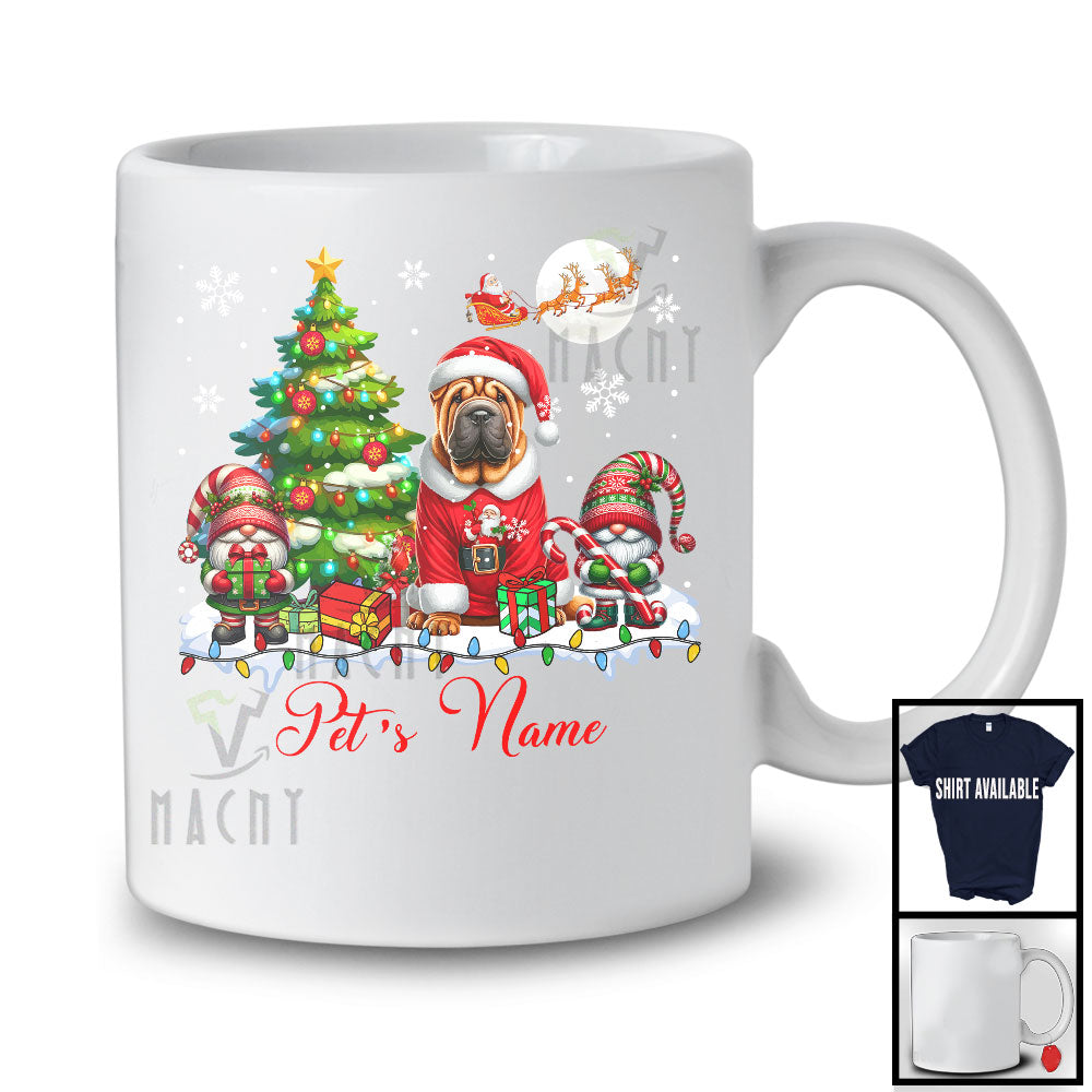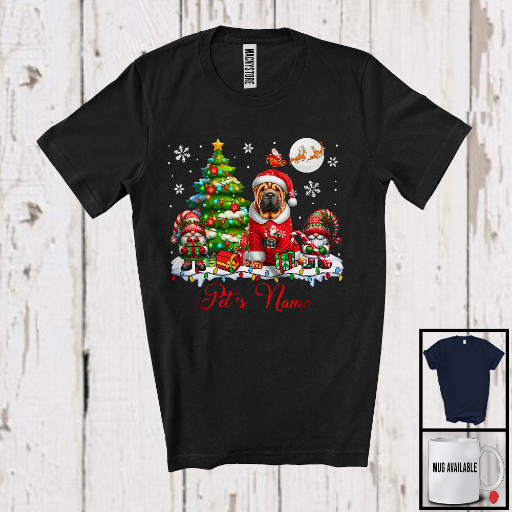 Personalized Custom Name Santa Shar Pei With Gnome, Lovely X-mas Tree, Snow Around T-Shirt