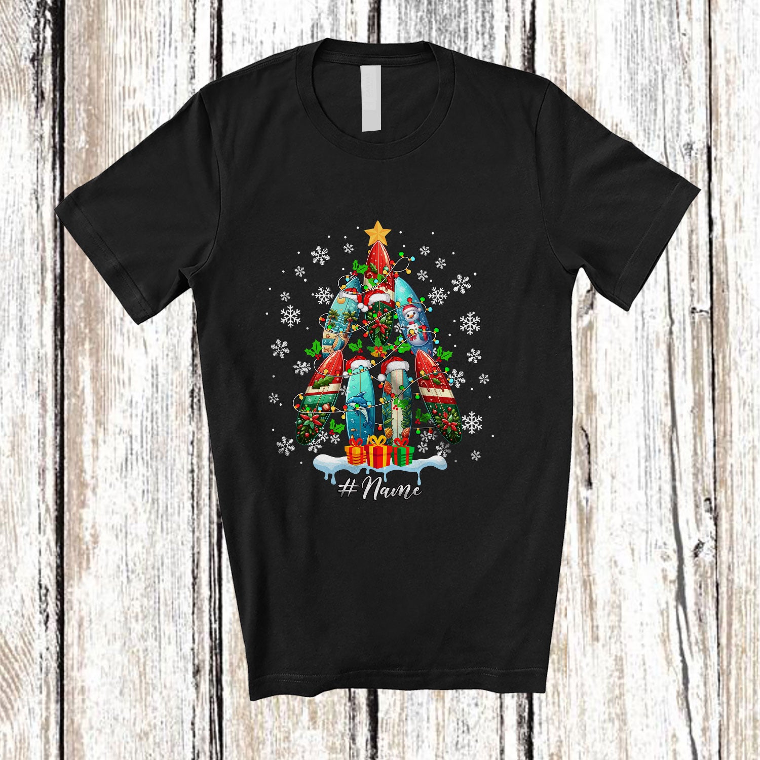 Every product is unique, just like you. If you're looking for a product that fits the mold of your life, the Personalized Custom Name Santa Surfing Tools Christmas Tree; Amusing X-mas Lights Family T-Shirt is for you.