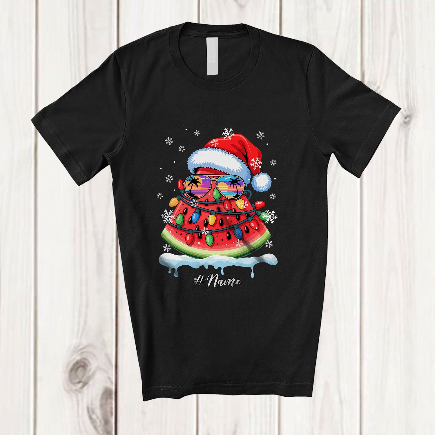 Personalized Custom Name Santa Watermelon Sunglasses; Joyful Christmas Lights Family Group T-Shirt