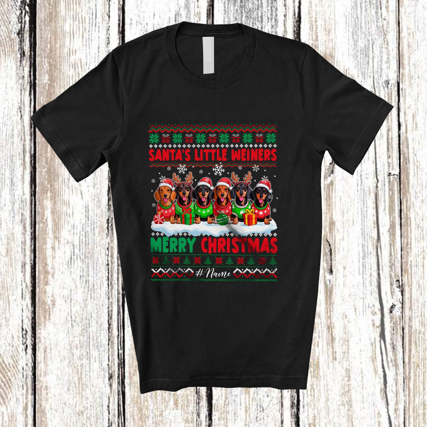 Personalized Custom Name Santa's Little Weiners; Merry Christmas Sweater Santa Dachshund T-Shirt