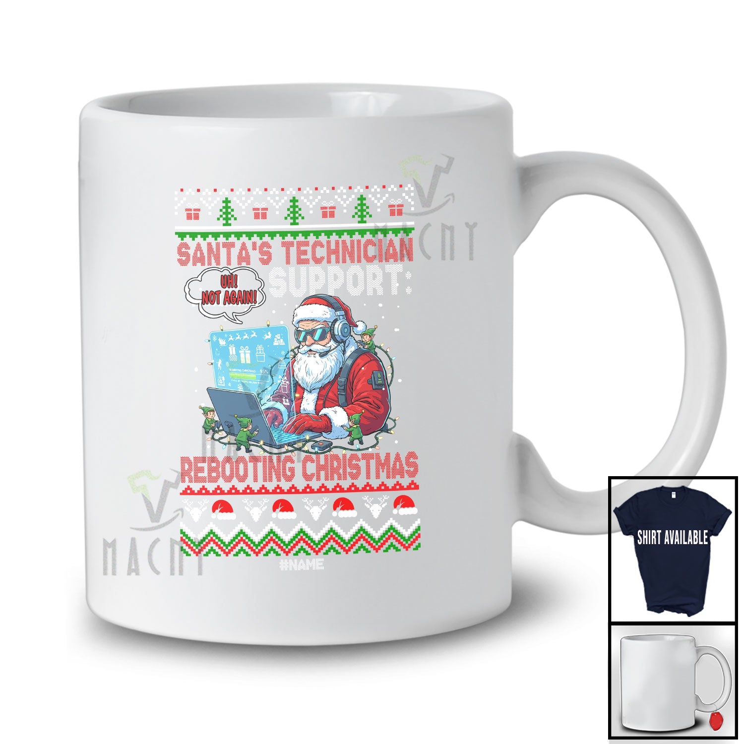 Personalized Custom Name Santa's Technician Support Rebooting Christmas; Proud Sweater IT T-Shirt. This cotton t-shirt is a durable staple product with a classic fit. One of the most popular items, it has a relaxed style made for everyday and casual wear.