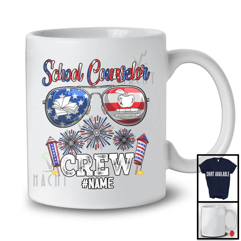 Personalized Custom Name School Counselor Crew, Joyful 4th Of July Sunglasses, Careers Patriotic T-Shirt