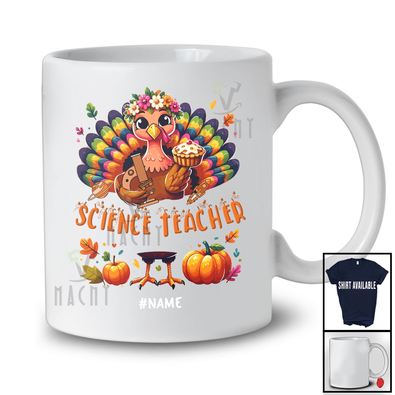 • Personalized Custom Name Science Teacher; Lovely Thanksgiving Turkey Pie Book Education Jobs T-Shirt. This cotton t-shirt is a durable staple product with a classic fit. One of the most popular items, it has a relaxed style made for everyday and casual wear.