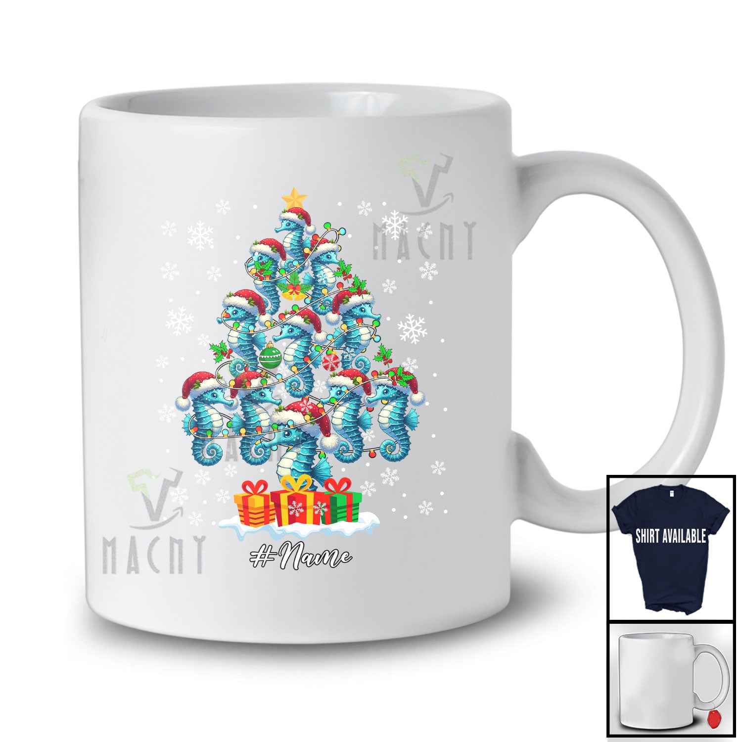 Personalized Custom Name Seahorse Santa As Christmas Tree; Lovely X-mas Lights Family T-Shirt. This cotton t-shirt is a durable staple product with a classic fit. One of the most popular items, it has a relaxed style made for everyday and casual wear.