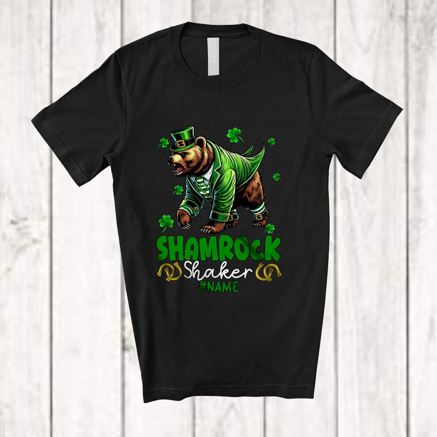 • Personalized Custom Name Shamrock Shaker; Humorous St. Patrick's Day Leprechaun Bear; Family T-Shirt. This cotton t-shirt is a durable staple product with a classic fit. One of the most popular items, it has a relaxed style made for everyday and casual wear.